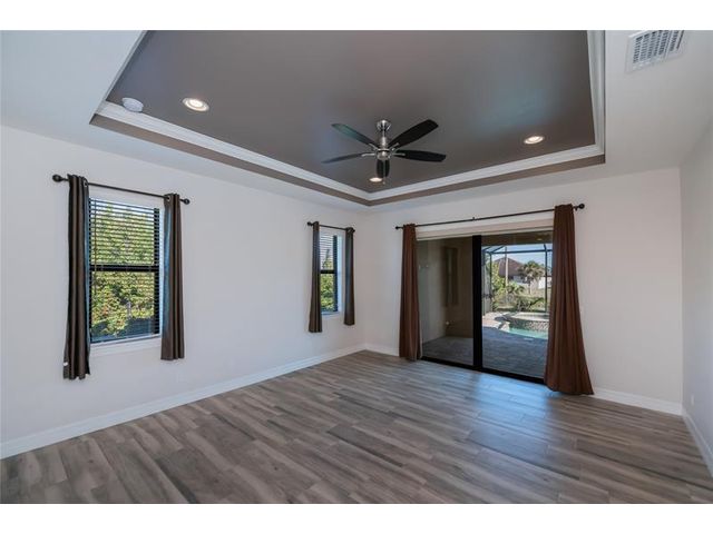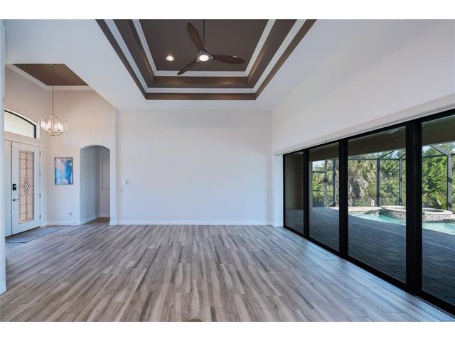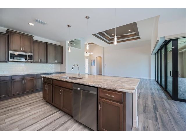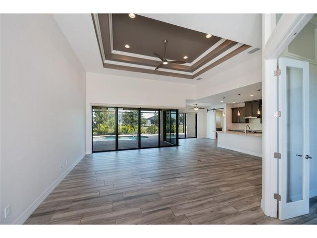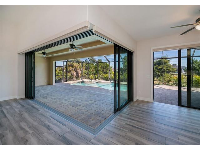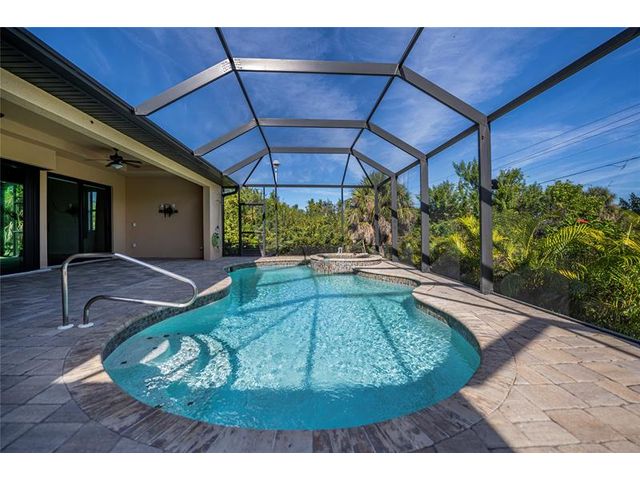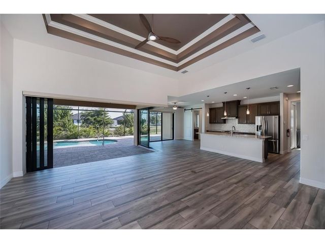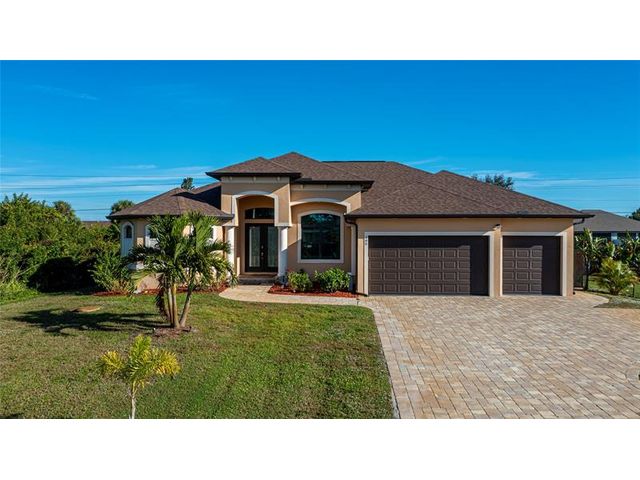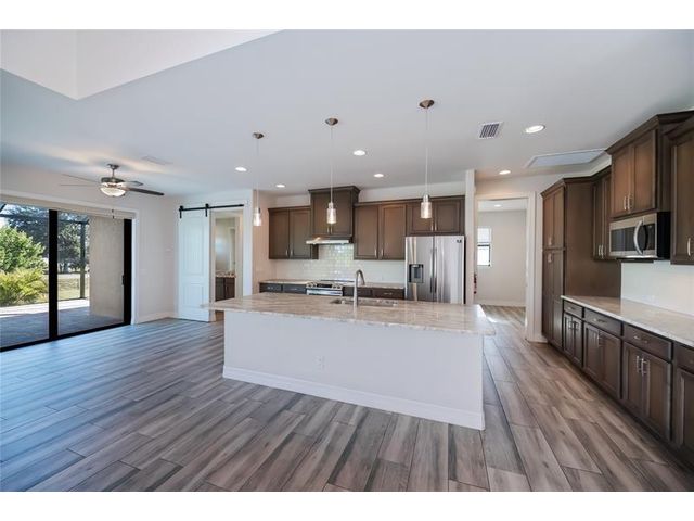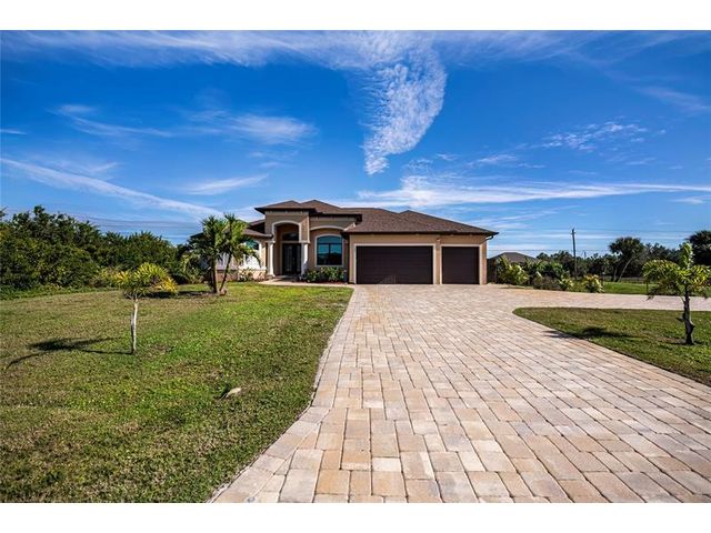 Exquisite 2021 custom-built DM Dean residence on a fully fenced double lot of nearly 3/4 acre in the Rotonda Heights golfing community. This 3-bedroom, 2-bath home features 14' tray ceilings, designer lighting, and ceramic plank flooring. The expansive living room anchors the open layout with 90-degree sliding glass doors for seamless indoor-outdoor living. The gourmet kitchen offers wood cabinetry, stone countertops, stainless appliances, a large island, and adjacent dining area overlooking the pool. Highlights include a 3 car garage, extended paver driveway with RV parking/hookup, oversized laundry with pantry, city water/sewer, and a low HOA. Enjoy a heated saltwater pool and spa, paver lanai, hurricane impact windows, fire pit, and proximity to golf, beaches, dining, and airports.