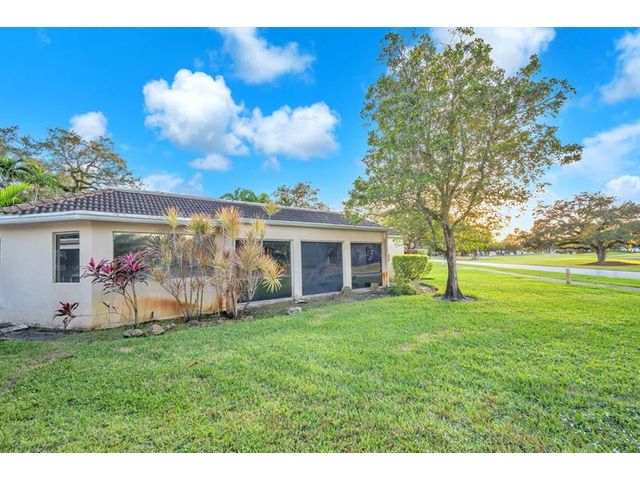 Welcome to Emerald Green Villas Section 2! This bright and spacious ground-level residence offers an open-concept layout with a desirable split 2-bedroom floor plan, 2.5 baths, and a closed-in patio with the ability to make a 3rd room. Enjoy golf course views and easy access with two private entrances. 2nd entrance into the laundry/utility room to help manage deliveries/groceries. The eat-in kitchen and separate laundry room add everyday functionality. Centrally located in the heart of Emerald Hills, this home is walking distance to houses of worship and a new playground and splash pad coming soon, and just minutes from TY Park. Community amenities include a heated pool. Ideally located only 10 minutes to the airport, 15 minutes to the beach, and 5 minutes to the Hard Rock Casino.