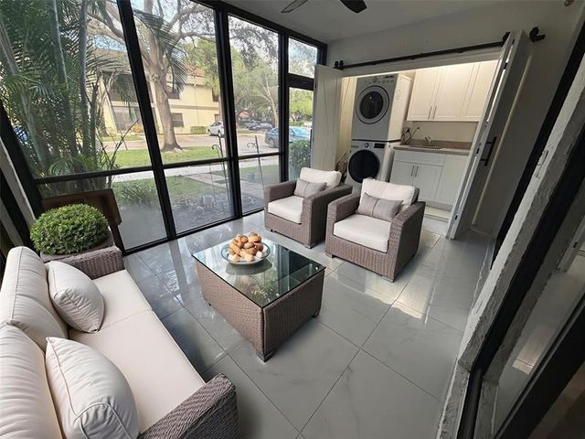 This is the home you've been waiting for. This first floor, corner unit is an absolute GEM. It has been fully renovated so you can just bring your toothbrush. From the shiny ceramic floors, all High Impact doors and windows, washer and dryer inside with private laundry area, custom made wooden-closets cabinetry in every bedroom and a great open-concept kitchen, you will be ready to entertain. The spacious patio area has been fully enclosed, perfect as a versatile extra living space. This corner unit offers tons of natural light, privacy and it is also conveniently located right next to the resort-style pool area- that you will absolutely Love. Stainless steel appliances, electric water heater, recently updated AC unit & AC vents. Vacant and easy to show, come see it today.