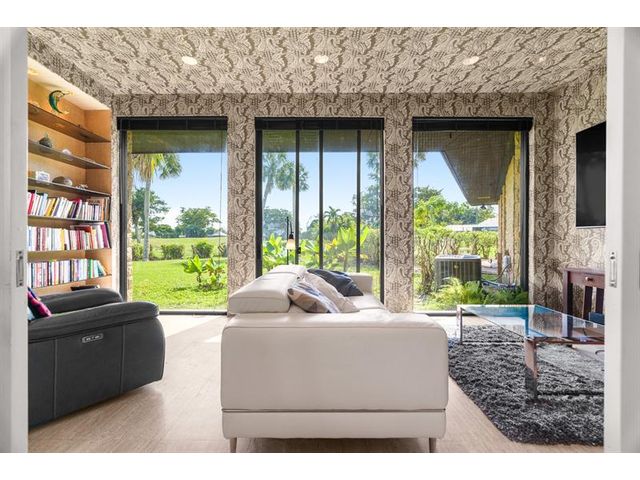 Welcome to 5300 White Oak Lane, a one-story estate w/ Canal Views in Tamarac’s Woodlands community set on a 0.91-acre homesite w/5,088 square feet, 3 bedrooms, and 3.5 bathrooms. Featuring a circular driveway, bright open layout, great room w/ volume ceilings, skylights, built-ins, ceramic tile flooring, ample natural light, a den, office, & laundry room. Primary suite includes an expanded bathroom & custom closet room. Kitchen offers a center island, custom cabinetry, updated countertops, & KitchenAid appliances. Outdoor highlights include a heated saltwater pool w/wireless cleaner, and water fountain. Additional features include a main electrical panel update (2019), tankless water heater, central vacuum, Rachio sprinkler system, four A/C units (2008–2020), and updated two-car garage.