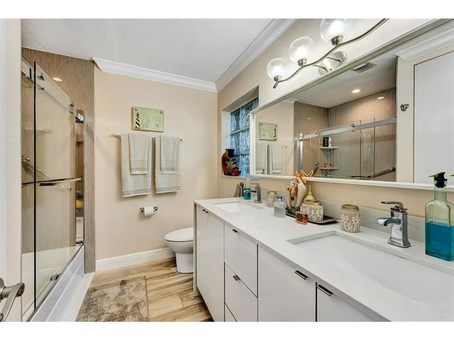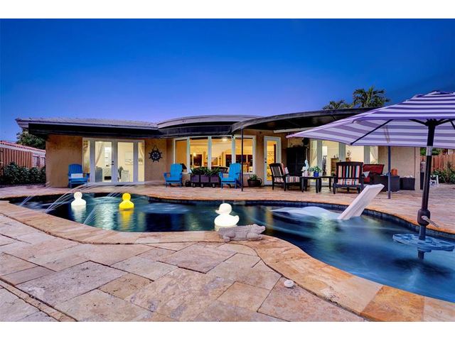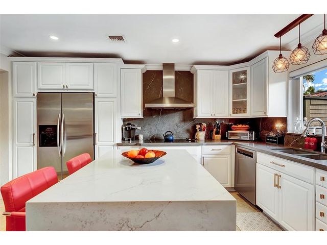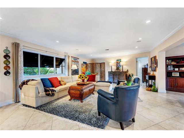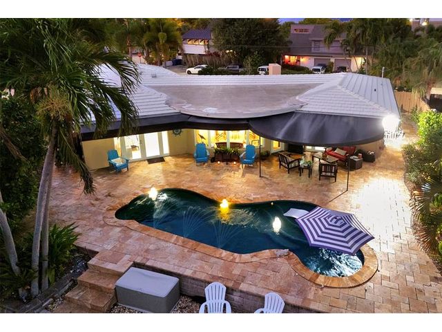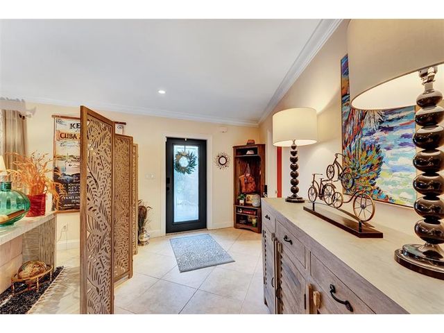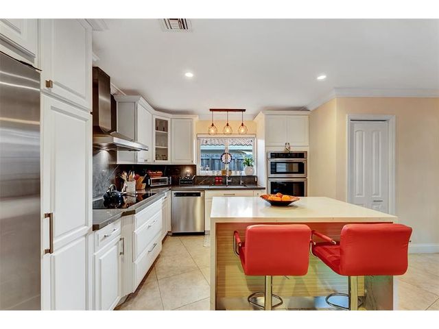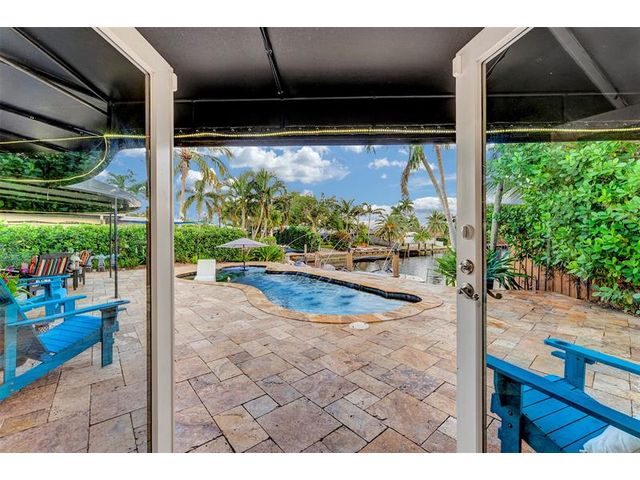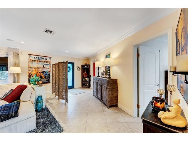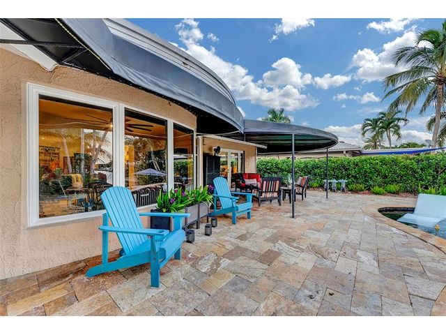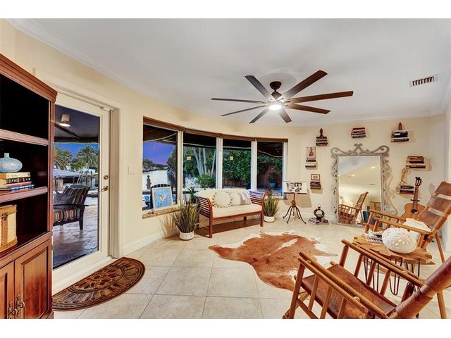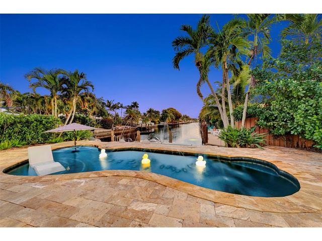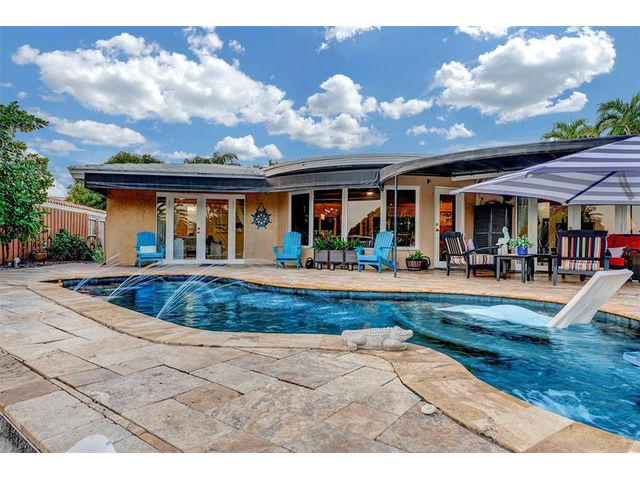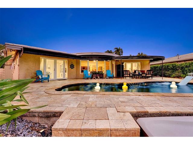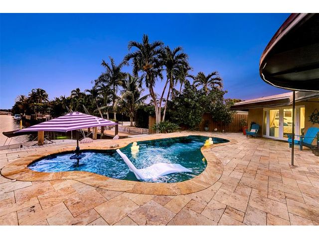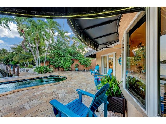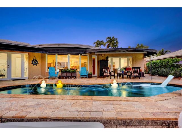 Renovated 3-bedroom, 2.5-bathroom on the Isles of Wilton Manors. Perfect for boating enthusiasts and an amazing view, ceramic tile flooring, recessed lighting, and impact-resistant windows and doors. With 45 feet of waterfront, enjoy a newer Trex dock and a lagoon-style heated and chilled saltwater pool complete with a water feature and built-in spa jets. The outdoor space is adorned with Travertine marble decking, a newer patio canopy, and lush tropical brand new landscaping. The kitchen is a chef's dream, featuring white cabinetry, new stainless steel appliances, a walk-in pantry, and a new quartz island and countertops. The modern bathrooms are completely updated. A versatile bonus room can serve as a media room, office, or studio, equipped with A/C and a half bath! Newer roof and AC!