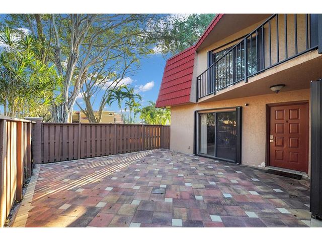 Welcome to this beautiful corner-unit townhome, offering a rustic modern feel & spacious layout. The main living area overlooks a large, private, paved, & fenced-in patio. Upstairs, newer flooring flows throughout the master bedroom offering a walk-in and double vanity, while the 2nd bedroom also features a deep closet & its own bathroom. Both bedrooms provide access to a shared upper balcony. Hurricane/accordion shutters, an exterior storage room, & major system updates including the A/C & water heater (2013) Low HOA that covers roof & common areas, along with access to community amenities including a clubhouse, spa+pool, gym, sauna, steam, tennis courts, playground, & scenic walking paths. Ideally located near A-rated schools, shopping, dining, & all the best Boca Raton has to offer!