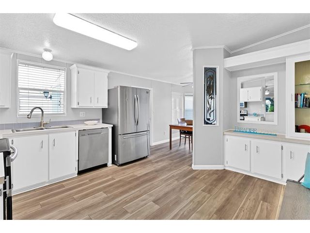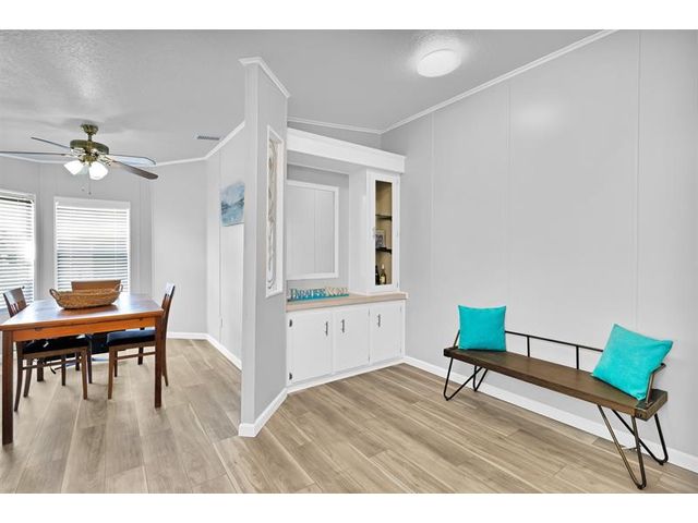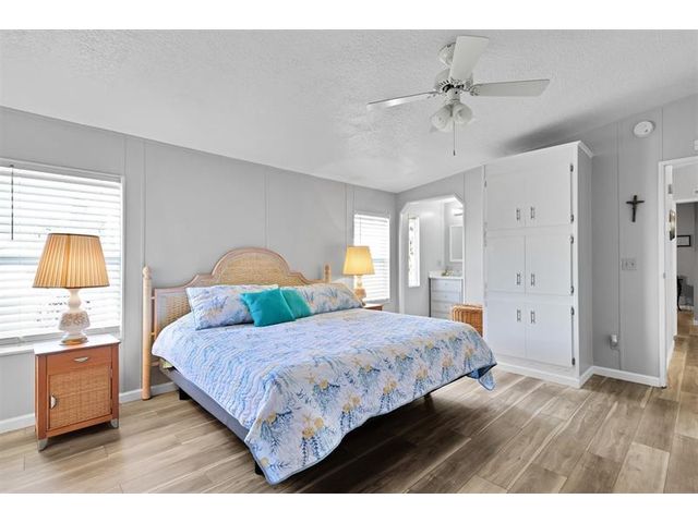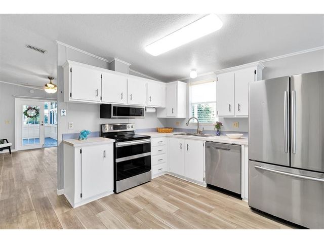 COME HOME TO BAREFOOT BAY....Discover this beautifully updated split-bedroom home featuring NEW luxury vinyl plank flooring, stylish bathroom cabinetry, and a sleek updated kitchen with stainless steel appliances. Enjoy cathedral ceilings, a bright open living space, and French doors leading to an east-facing enclosed porch perfect for an office or hobby room. The fenced backyard offers privacy for relaxing or entertaining. Experience resort-style amenities and year-round activities 3 pools, clubhouse, tennis/pickle ball, beach access —live like you’re on vacation in this vibrant coastal community! ROOF 2023 REPIPE 2023 GOLF CART INCLUDED
