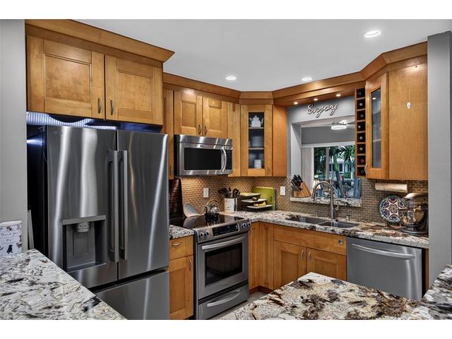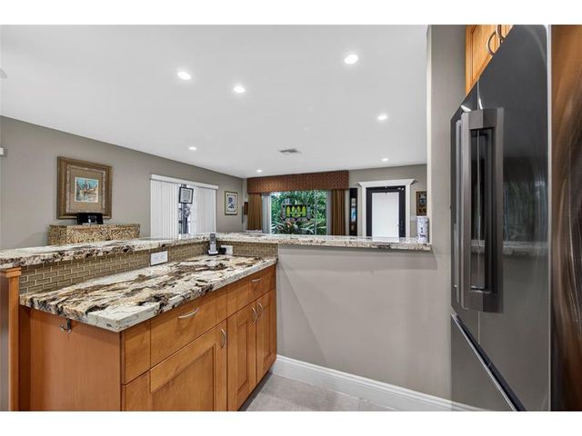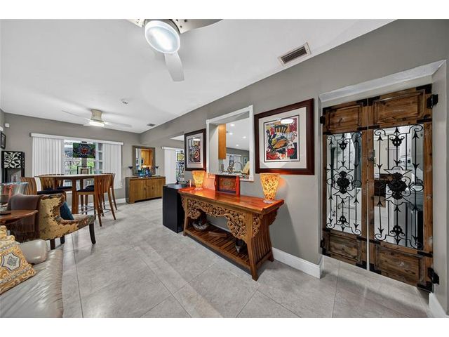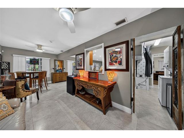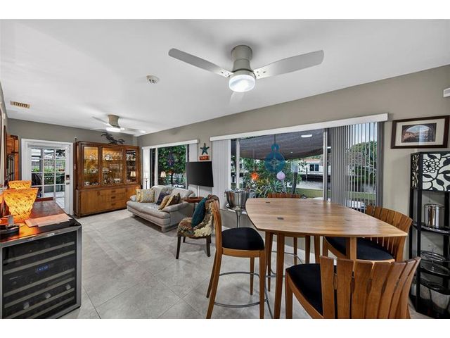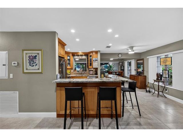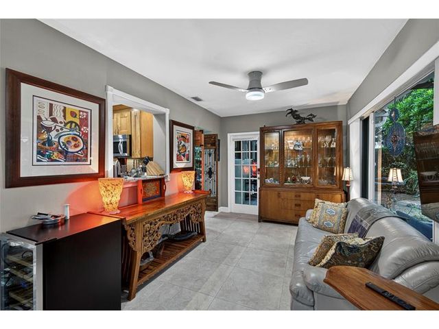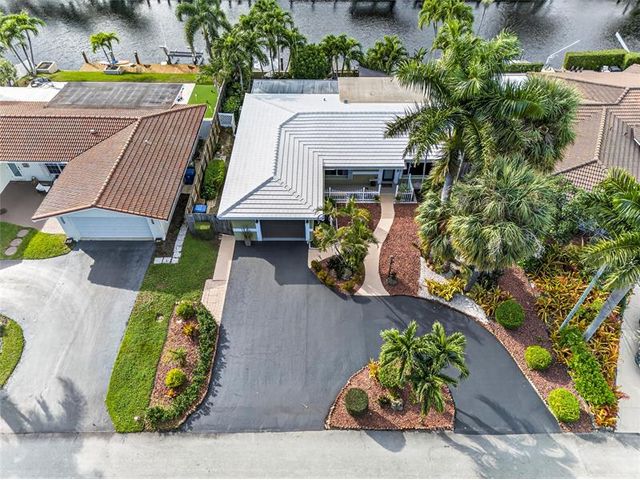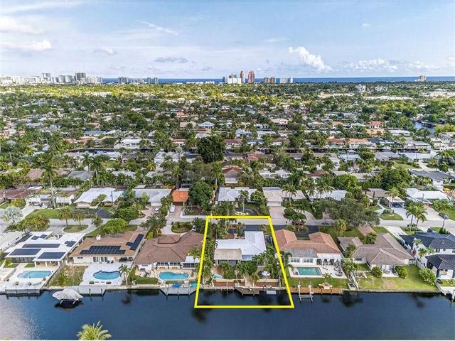 East Wilton Manors waterfront house -- just 2 fixed bridges to the Intracoastal. Relaxing home with 3 bedrooms, 2 baths, Florida room & screened porch overlooking the canal. Open Kitchen with granite countertops, electric range with convention & warming drawer, wine cooler. Convenient indoor laundry room off the bedroom hallway. Generous 1+ car garage with impact garage door. House protected by accordion shutters, front door impact. Tile roof new in 2018 with straps & tie downs added. New AC system in Oct 2024. Electrical wiring updated and cast iron pipes replaced with PVC in 2014. Dock has 2 davits, up to 4,000lbs each, also a floating dock for your kayak. Easy outdoor living with patio and hot tub -- ready for new owner to enjoy!
