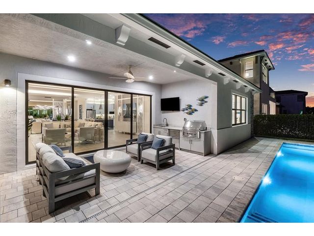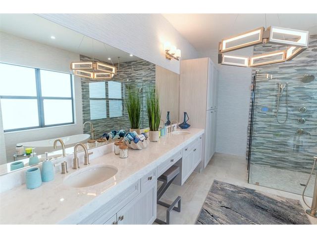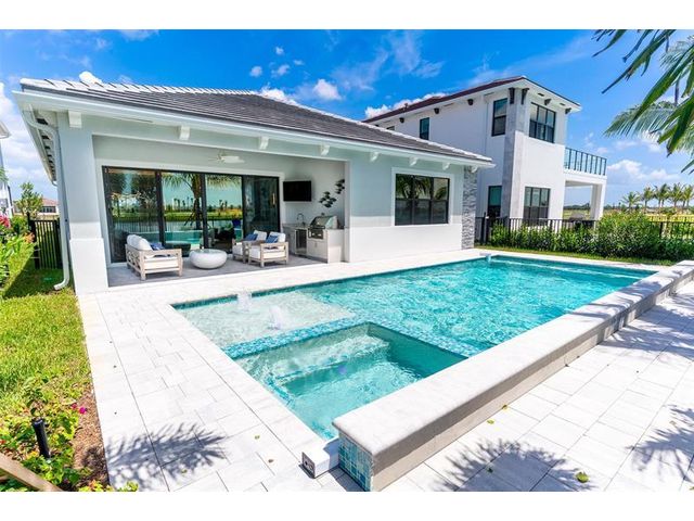 BUILDER MODEL HOME – FULLY FURNISHED! Experience the Malibu Gen Plus Model at Solana Bay, featuring 3 bedrooms, 3 full bathrooms, a den/office, and a private Gen Plus suite. This light-filled, open-concept home offers soaring ceilings, wood plank tile, and an expanded chef-inspired kitchen with quartz counters, oversized island, stainless steel appliances, wall oven, built-in microwave, 42" cabinets, and a natural gas cooktop. Additional features include a 2-car garage, tankless water heater, gas dryer, impact windows/doors, smart home automation, and alarm monitoring. Enjoy a private pool with hot tub and a fully equipped outdoor summer kitchen. Community amenities include a resort-style heated pool, lap pool, tennis, pickleball, fitness center, and cabanas. Square footage approx.