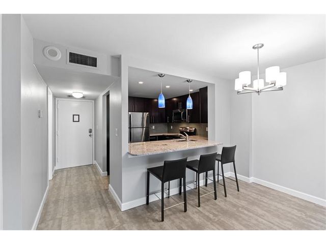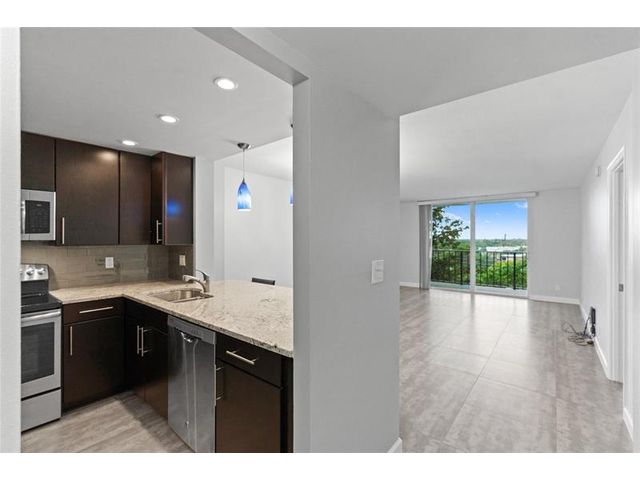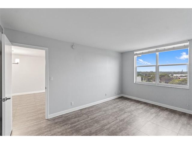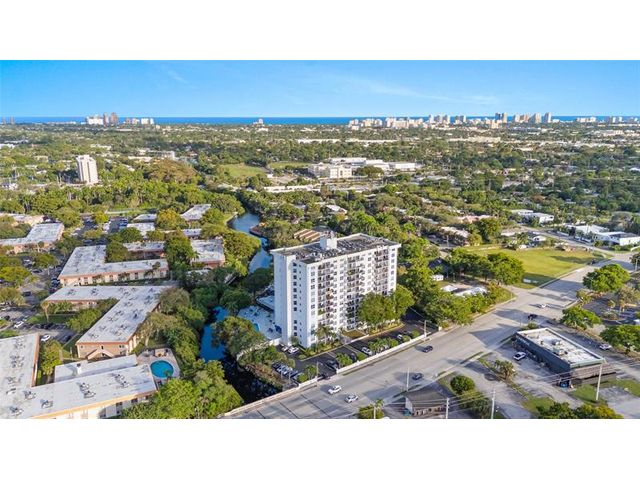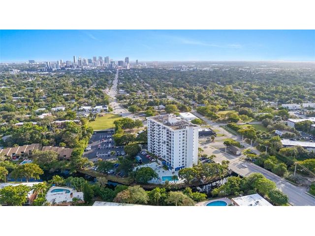 Discover this beautifully renovated condo offering sunset views and a bright, open layout. The kitchen has been opened to the living area, creating a seamless living space. Full renovation includes a new electric panel, impact windows & doors, and new AC installed in 2025. Consistent tile flooring runs throughout the unit and half bath adds extra convenience. This building features a spacious, gated parking lot, a heated pool, a grill area, a car-wash station, and bike storage. Cable TV and high-speed fiber-optic internet by Hotwire included. A complimentary laundry room is conveniently located just across the hall. One small pet is welcome too! Newly renovated lobby, community room, and updated elevators. Walk to Wilton Drive Restaurants & Entertainment. Easy to show!