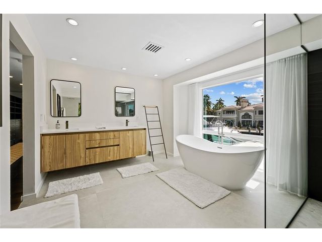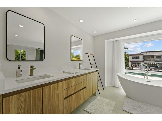 This 5 bedroom 4.5 bath plus 2 offices/den estate sits on 80’ of waterfront with no fixed bridges and ocean access. Extensive renovation in 2012. Impact windows and doors. Marble flooring throughout living areas and wood flooring in bedrooms. Grand open living spaces with vaulted ceilings in the living room and the family room has beautiful wood beamed ceilings and wet bar. Gourmet kitchen features quartz countertops, wood cabinetry, stainless steel appliances and center island. Second level master wing boats large master suite, expansive walk-in closet with built- ins, spa like bath and office/sitting area. Spacious secondary bedrooms. Outdoor living with gazebo, saltwater pool, and tranquil water views. Property located at the end of Seven Isles Drive with little thru traffic.