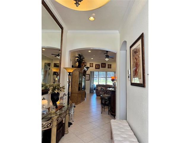 WATER FRONT on EXTRA LARGE PIE SHAPE LOT! ROOF REPLACED 2023 / INT & EXT PAINT 2022 / OVERSIZED SCREENED PATIO REFURBISHED 2022 / UPGRADED 5" BASEBOARDS - CROWN MOLDINGS / STORM SMART MOTORIZE HURRICANE SCREEN in PATIO - ACCORDION SHUTTERS / INSULATION INSTALLED Over the Garage and on Garage Door / EXPOXY FLOORING in Garage / GENERATOR PLUG / 2022 NEW GUTTERS INSTALLED / KITCHEN CABINET LIGHTING / 4 BEDROOMS - 4th Bedroom does not have a closet /3 BATHROOMS / CUSTOM CLOSETS / Spilt Bedroom Plan Great for Multi Generation Living / NO CARPET!!! / 8 ft Doors & High Ceilings / WINDOW BLINDS / BRAND NEW CLUBSHOUSE with Cafe & Full Bar with Weekday Happy Hour Specials - Fitness Center - Two Pools - THIS IS COUNTRY CLUB LIVING WITHOUT THE HIGH MEMBERSHIP DUES!