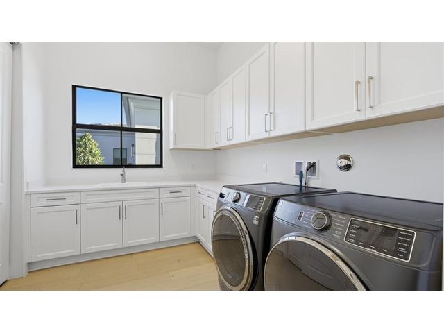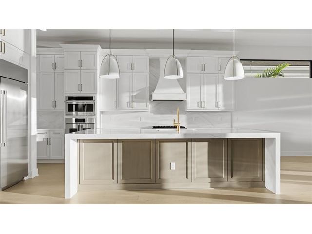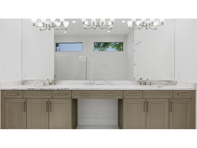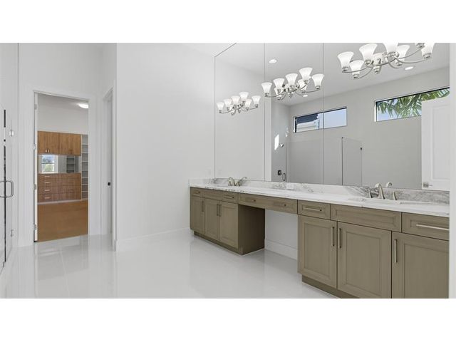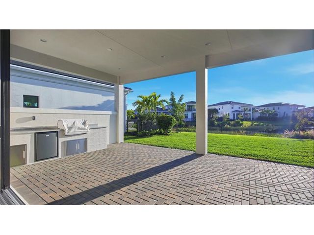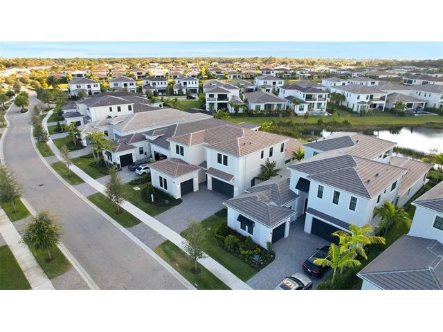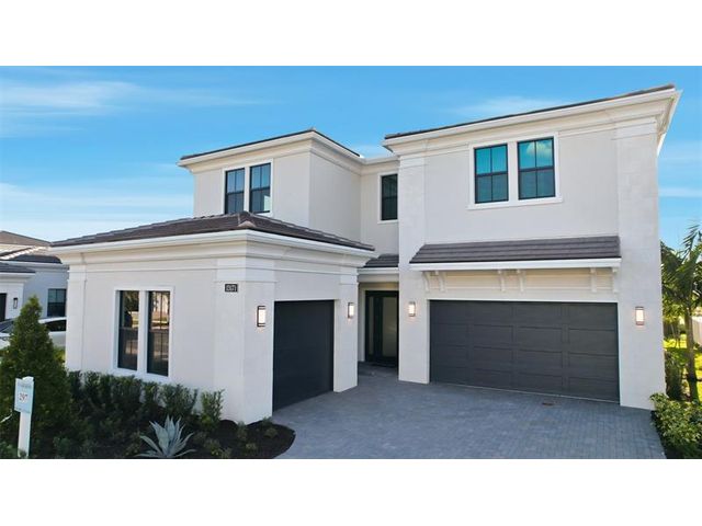 **New Construction - Move In Ready** This brand-new Mondrian floorplan, built by Kolter Homes is situated on an interior waterfront homesite within the gated community of Artistry Palm Beach. This home offers 4-bedroom suites, each with their own bathroom, an additional half bathroom and a split-3 car garage. This Mondrian also includes gas cooking in the kitchen, 2nd tier upper cabinets, quartz backsplash, a 3'' quartz kitchen island with waterfall ends and under cabinet LED lighting. The great room includes a 20' wide by 10' tall sliding glass door and the loggia has been extended 4'. The loft has been upgraded to an optional larger game room with an added wet bar. There is a gas connection for a future pool heater, as well as an added outdoor summer kitchen.