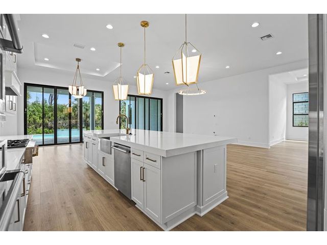 This Michelangelo also includes gas cooking in the kitchen, 2nd tier upper cabinets, quartz backsplash, 3” edge quartz kitchen island and under cabinet LED lighting. The house has an expanded owners walk in closet, and expanded great room, and an owner’s bath with freestanding tub. The home also includes a gas tankless water heater. One of the last opportunities for new construction in the heart of Palm Beach Gardens, the community of Artistry Palm Beach offers a 24/7 manned-gated entry and resort style amenities, just minutes from the beaches and The Gardens Mall. The community is 1 mile to the Alton Town Center, which includes restaurants, shopping, grocery stores, beauty salons, and more.
