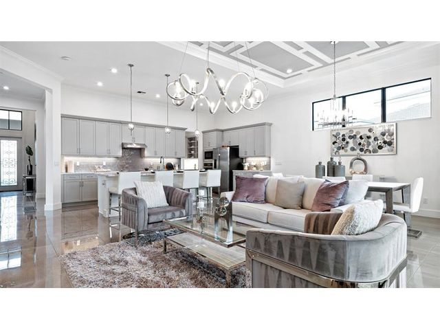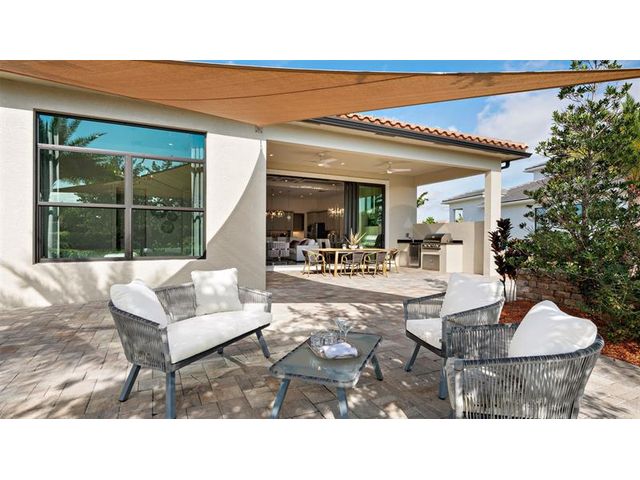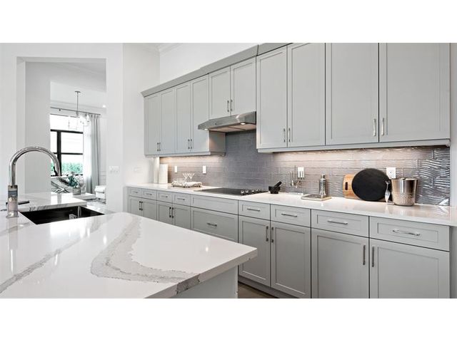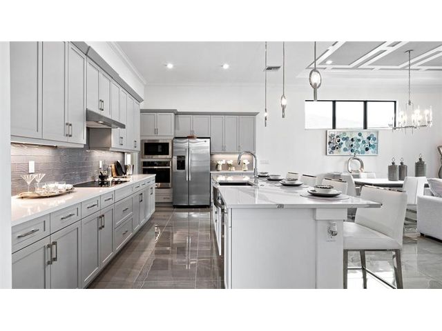 Discover The Cove at Park Trace in Stuart, FL—a gated new home community with a pool, sundeck, shaded lanai, and on-site restrooms. Enjoy access to beaches, golf, shopping, dining, and top-rated schools. Minutes from Downtown Stuart, Jensen Beach, and Palm City for vibrant Florida living. The Kitchen serves as the command center of the Julia floorplan. A gourmet kitchen with substantial countertop area, cabinetry and pantry. From the island, the view opens up light & bright across the Dining area and Great Room out to the covered Lanai. Owner's Suite highlights include a tray ceiling, spacious walk-in closet and separate vanities in the Owner’s Bath. Disclaimer: Photos of a decorated model home are for reference only. Actual home will differ.