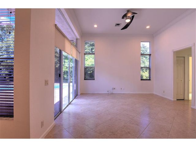 Beautiful 4-bedroom, 3-bathroom home with a 3-car garage on an oversized corner lot, filled with natural light. Features a stunning freeform pool and Jacuzzi. This home offers a triple split floor plan with high ceilings, crown moldings, and an open layout perfect for entertaining. The kitchen features a movable island, ample cabinetry, and abundant storage, complemented by three linen closets and spacious bedroom closets. Located in the Savanna community, with resort-style amenities and top-rated A+ schools. NEW ROOF.