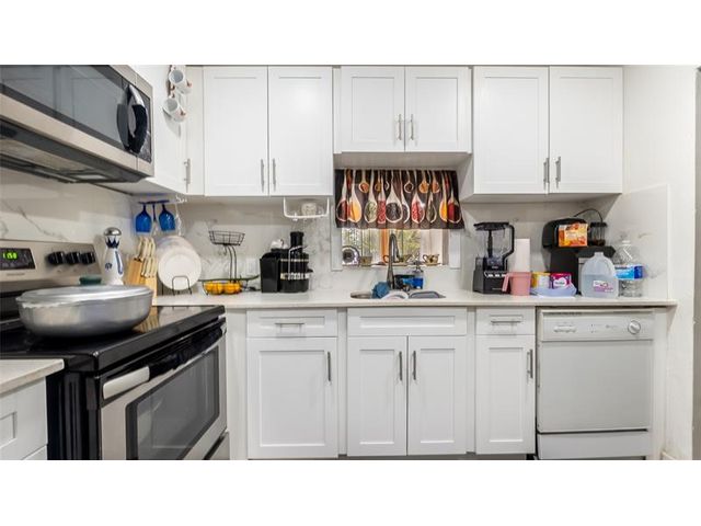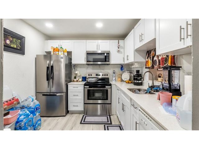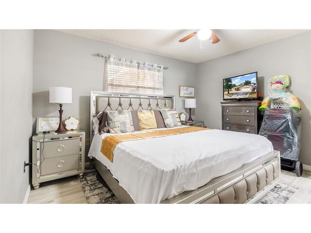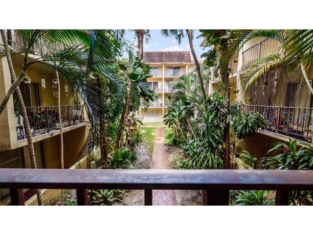 Beautifully maintained and move-in ready condo located in a tropical community. This spacious unit features a bright, open-concept living and dining area with updated flooring and abundant natural light. Sliding glass doors open to a private balcony with serene garden views. The interior offers tasteful finishes, recessed lighting, and a functional layout. The bedroom is generously sized with ample closet space,. The bathroom is clean, well-kept, and provides ample storage. Residents enjoy a peaceful courtyard surrounded by mature palm trees, creating a resort-style feel. The building offers on-site laundry facilities and assigned parking, and is conveniently located near shopping, dining, and major roadways! Ideal for those seeking a well-cared-for property in a tranquil setting.