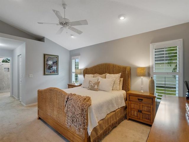 This impeccable 3 bed, 2 bath home on a lush .37-acre lot, boasting fresh modern upgrades-stainless appliances, impact windows with plantation shutters, separate spacious laundry room, vaulted ceilings & an airy open layout perfect for entertaining. Primary suite with updated bath, walk-in closet. Screened lanai, south-facing, fenced in backyard, perfect for future pool! Double wide driveway, 2 car garage. Updated include: roof ('22), re-piped ('22), impact windows ('15), fence ('22), Low HOA fees, close to beaches, shopping & parks. Spotless, move-in ready, your forever home awaits!