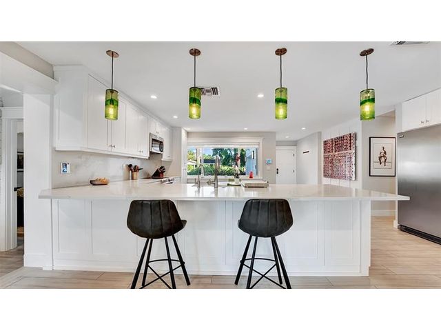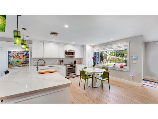The Isles of Wilton Manors!!Step into serenity with this exquisitely renovated 3-bed, 3-bath waterfront home in East Wilton Manors. Designed to impress, its coastal elegance is highlighted by soothing tones and high-end finishes throughout. The expansive open kitchen, perfect for both daily living and entertaining, boasts professional-grade appliances, quartz countertops, and a wine chiller. Folding glass doors connect the living room to a stunning outdoor oasis featuring a heated L-shaped saltwater lap pool, a 70' dock, and a 5,000-lb boat lift. Every detail has been thoughtfully curated, offering a luxurious retreat where tranquility meets sophistication. It is rare to find a home that has this much charm. This one is move in ready and waiting for you!