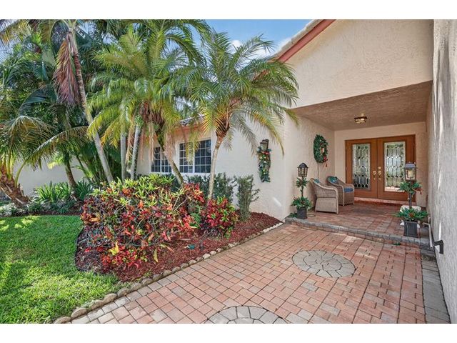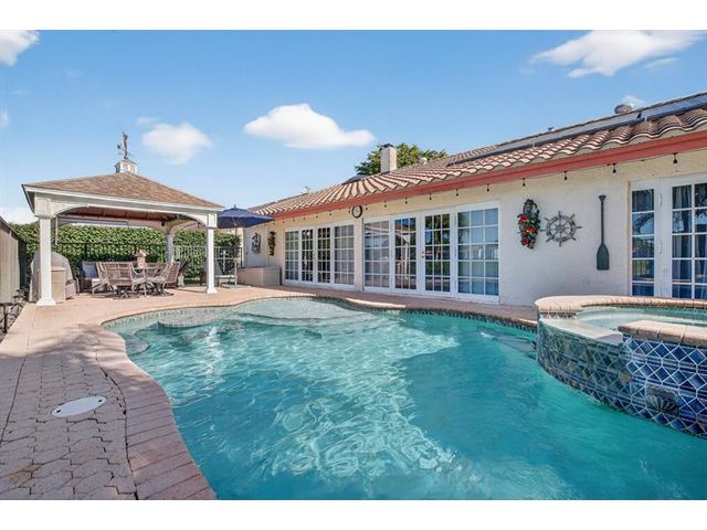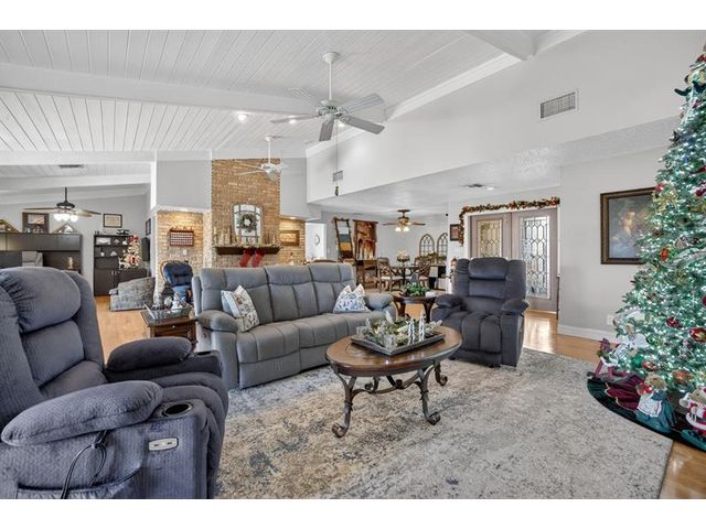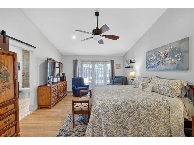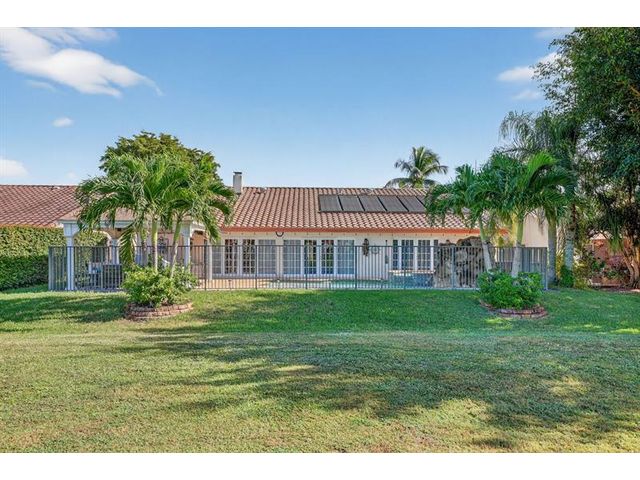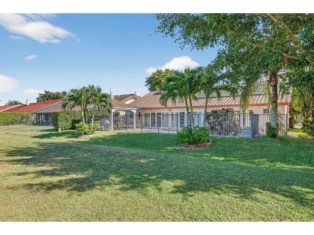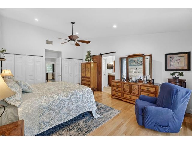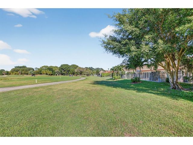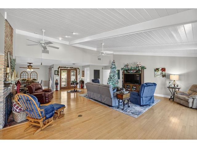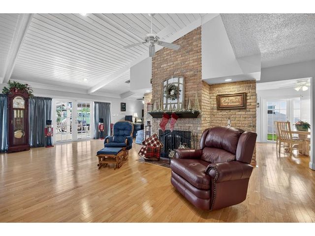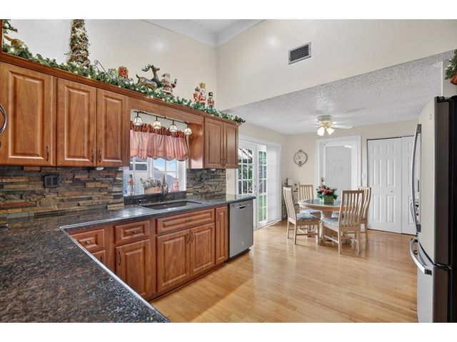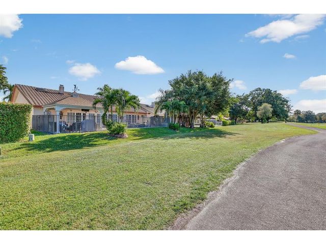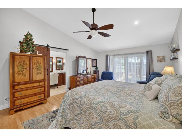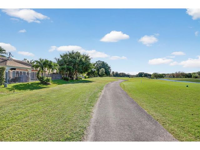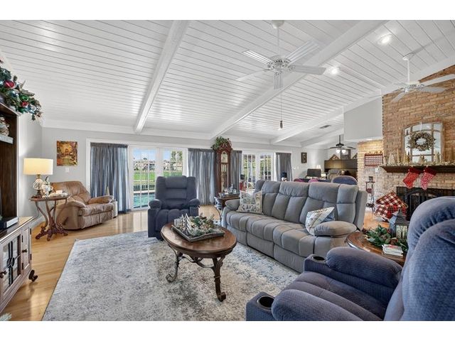 Welcome to this exceptional residence where charm, comfort, and breathtaking scenery blend seamlessly. Nestled amid picturesque golf course and lake views, this 3-bedroom, 2.5-bath sanctuary offers charm and functionality at every turn. The home features a circular paved driveway framed by lush landscaping, a 2-car garage, and solar panels for added efficiency. Inside, wood flooring flows throughout, complemented by vaulted ceilings and abundant natural light. French doors open to the serene backyard patio. The spacious family room is anchored by a charming brick fireplace. The kitchen boasts extensive cabinetry, granite countertops, stone backsplash, and sleek black stainless steel appliances. A separate laundry room adds convenience. Upgrades galore.