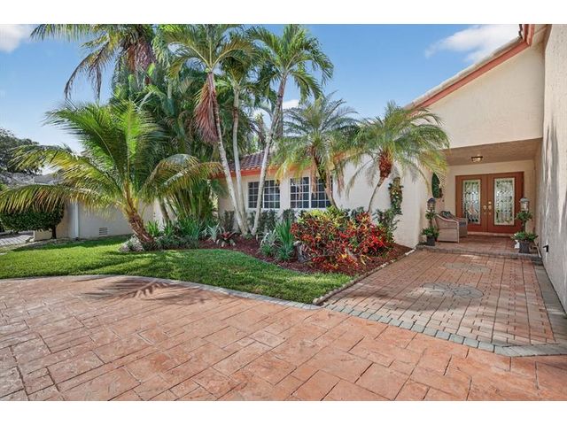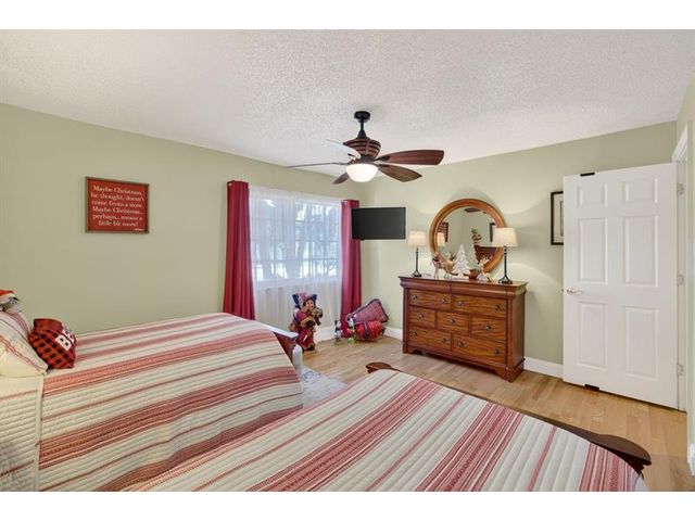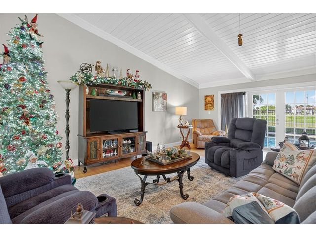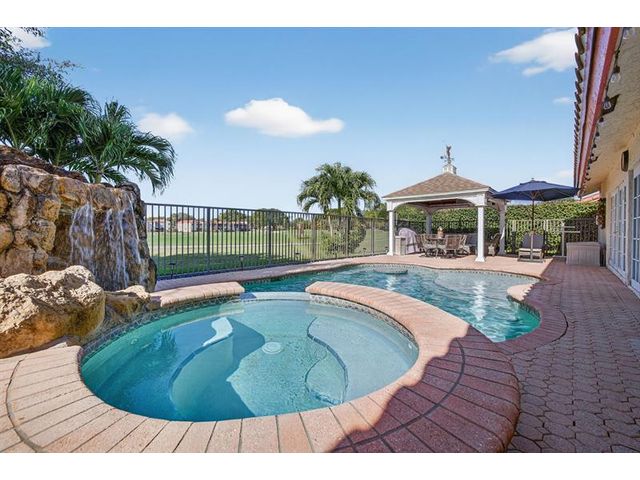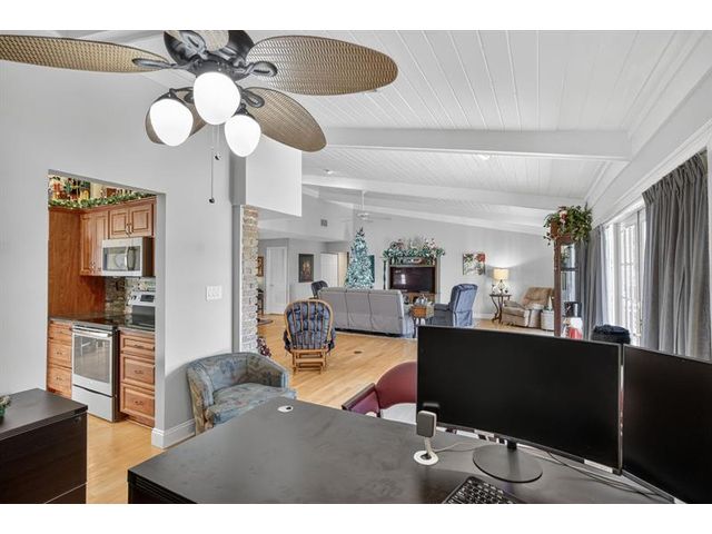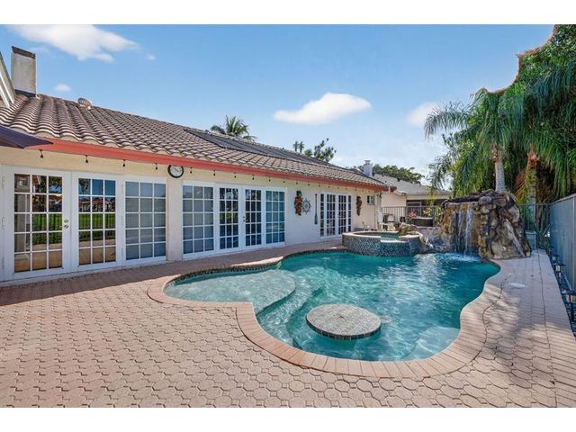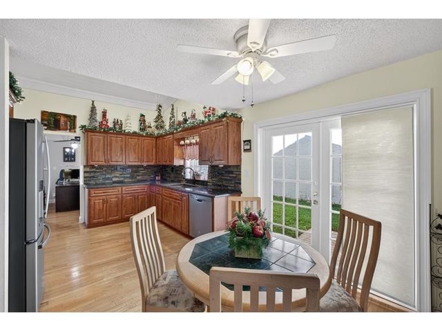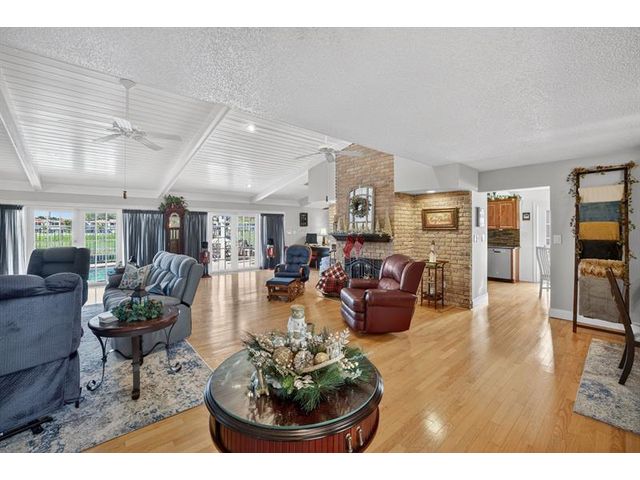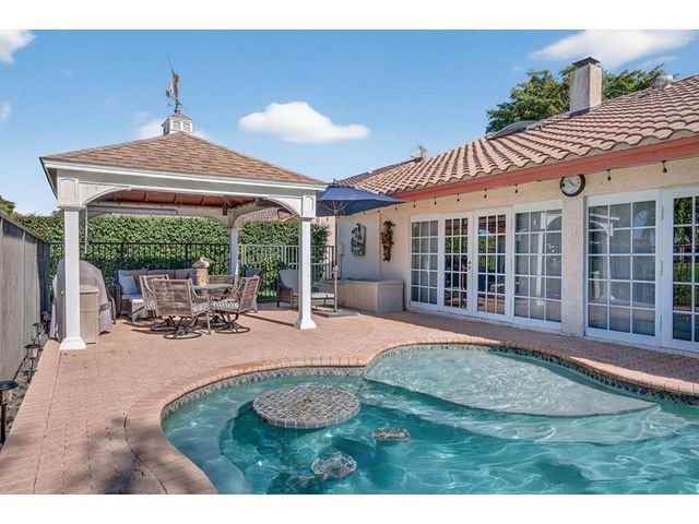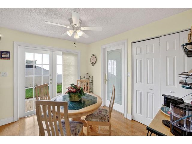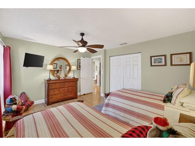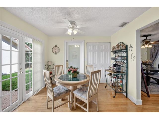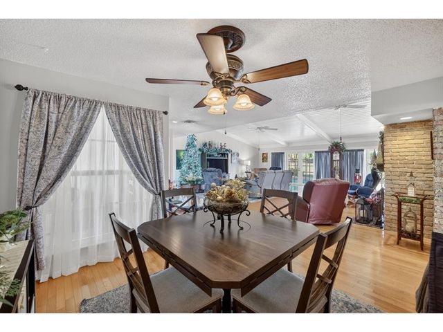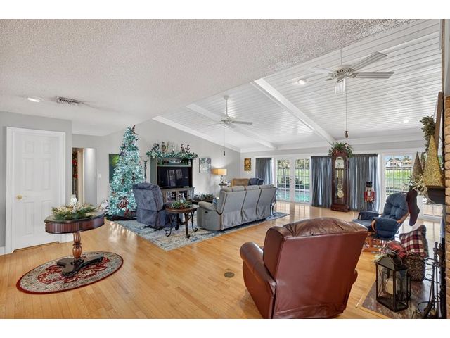 Welcome to this exceptional residence where charm, comfort, and breathtaking scenery blend seamlessly. Nestled amid picturesque golf course and lake views, this 3-bedroom, 2.5-bath sanctuary offers charm and functionality at every turn. The home features a circular paved driveway framed by lush landscaping, a 2-car garage, and solar panels for added efficiency. Inside, wood flooring flows throughout, complemented by vaulted ceilings and abundant natural light. French doors open to the serene backyard patio. The spacious family room is anchored by a charming brick fireplace. The kitchen boasts extensive cabinetry, granite countertops, stone backsplash, and sleek black stainless steel appliances. A separate laundry room adds convenience. Upgrades galore.