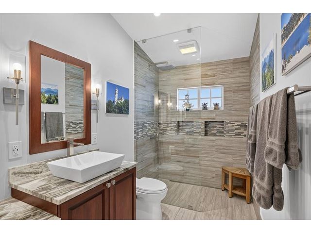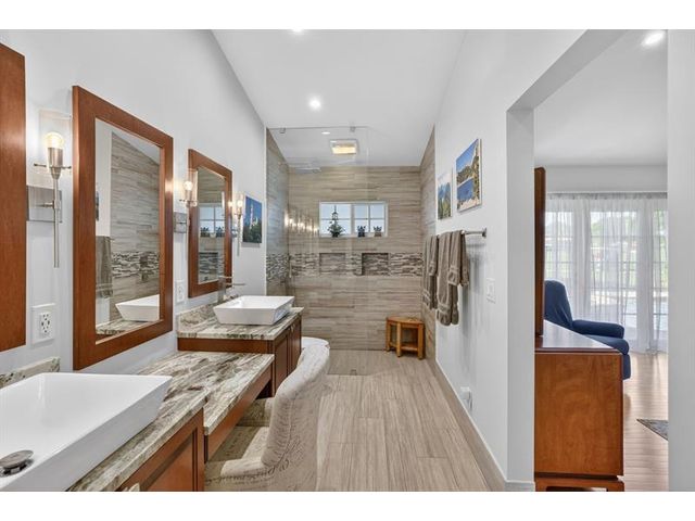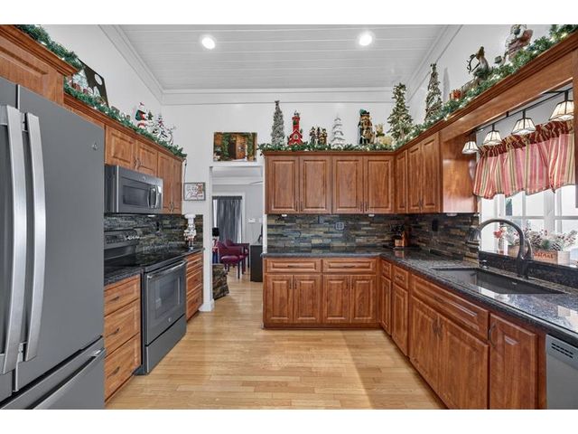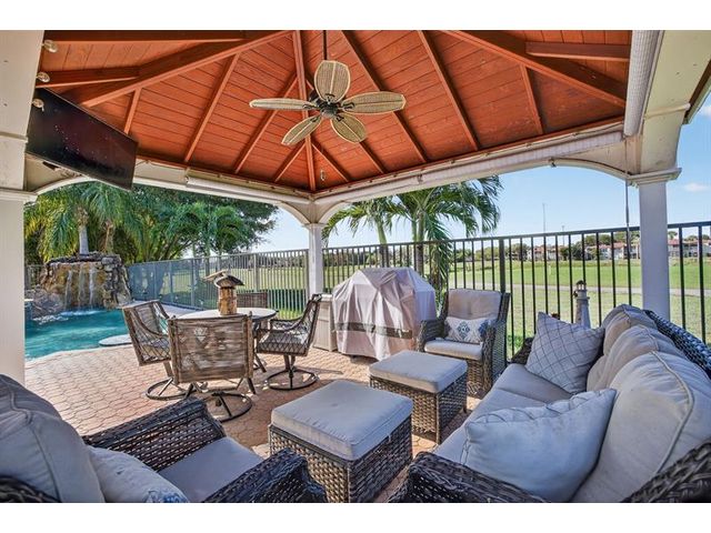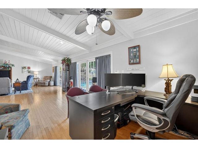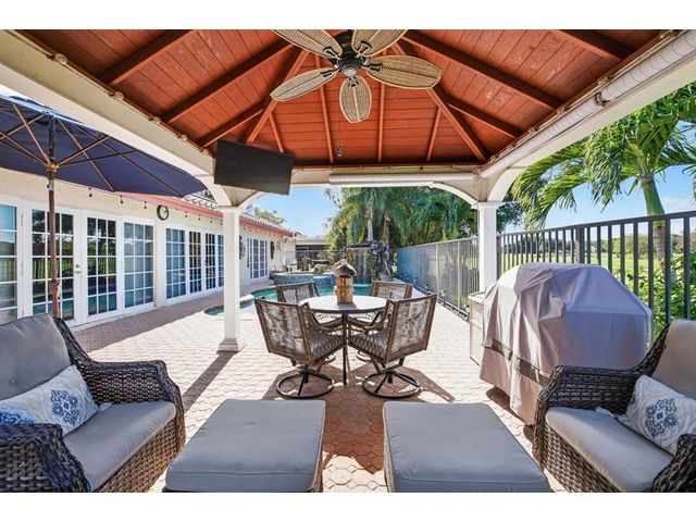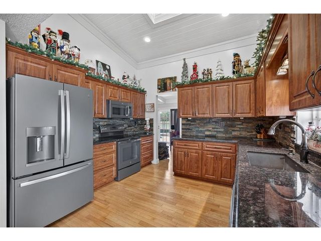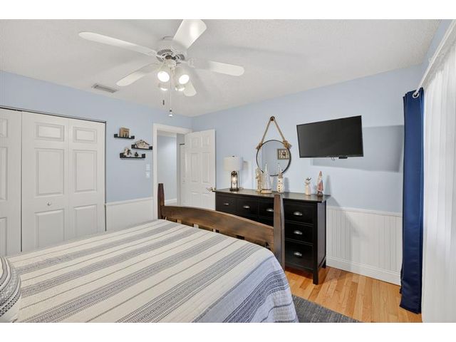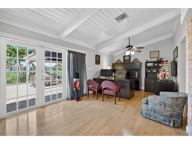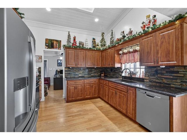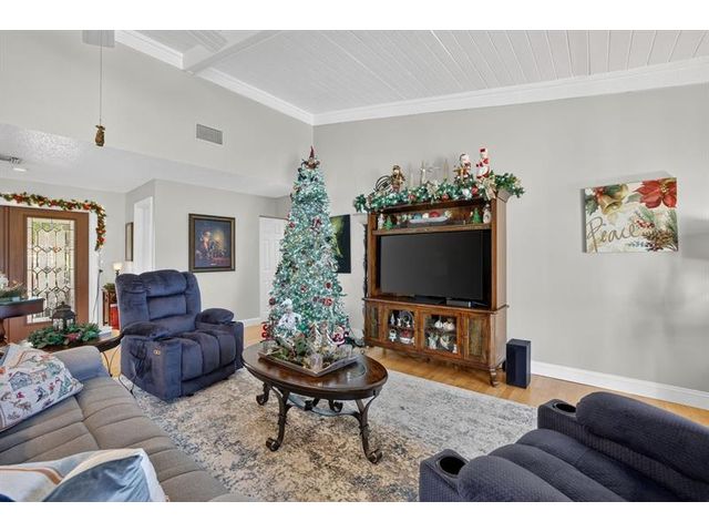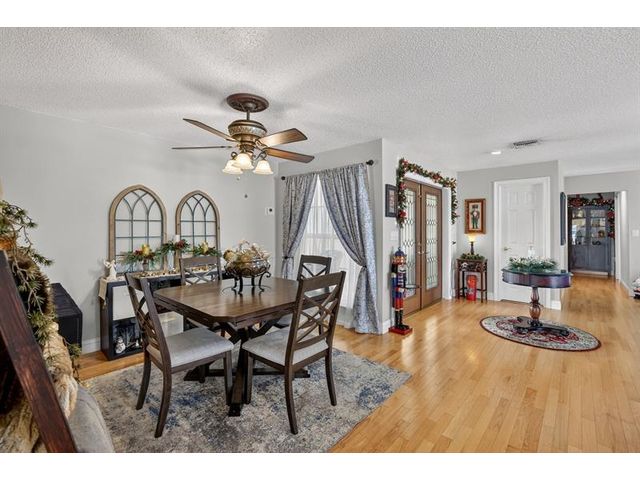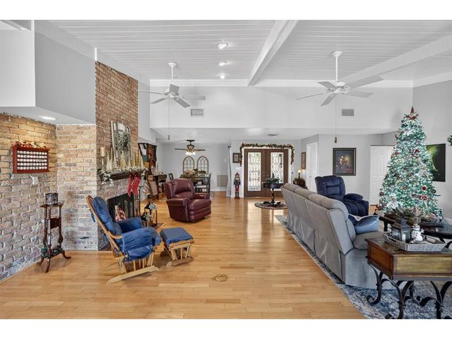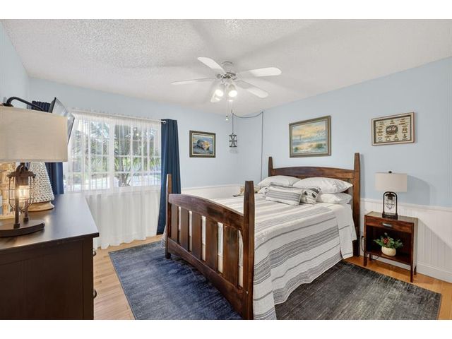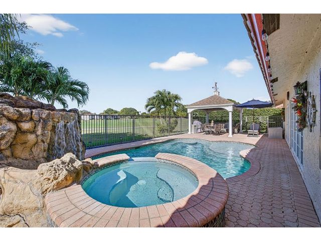 Welcome to this exceptional residence where charm, comfort, and breathtaking scenery blend seamlessly. Nestled amid picturesque golf course and lake views, this 3-bedroom, 2.5-bath sanctuary offers charm and functionality at every turn. The home features a circular paved driveway framed by lush landscaping, a 2-car garage, and solar panels for added efficiency. Inside, wood flooring flows throughout, complemented by vaulted ceilings and abundant natural light. French doors open to the serene backyard patio. The spacious family room is anchored by a charming brick fireplace. The kitchen boasts extensive cabinetry, granite countertops, stone backsplash, and sleek black stainless steel appliances. A separate laundry room adds convenience. Upgrades galore.