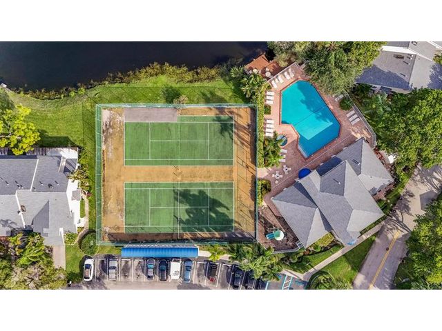 Spacious Townhome. 2 master bedrooms with walking closet. Loft can be used as an office or sitting area. Kitchen with stainless steel appliances, quartz countertops. No carpet throughout. Relaxing screen porch with amazing lake view. One car garage. Accordion shutters. Gated community with great amenities including hot tub, fitness center, heated pool, tennis and racquetball court. CAN BE RENTED IMMEDIATELY, NO ASSOCIATION APPROVAL NEEDED. Roof and skylights 2024, A/C 2020, washer and dryer 2024. Great location close to major highways, restaurants, shopping center, etc.