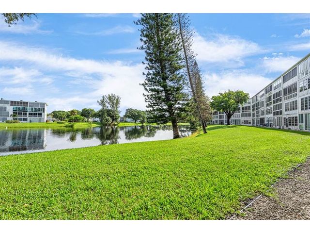 Beautifully renovated 1st floor 1 bedroom/1.5 bath condo with panoramic lakefront water view! Large enclosed patio with central A/C. Tons of upgrades: updated electrical panel, newly renovated kitchen (Cabinets, Quartz Countertops, & Lighting) & bathrooms, new water heater, flooring & more! Beautiful wood-looking floors throughout. Building has reserves & newer roof. Prime location in the heart of Century Village. Gated 55+ community w/24 hr security. Free shuttle bus transportation, heated pools, tennis/pickleball courts, putting green & amazing Clubhouse with classes, clubs, theatre & movies, amazing gym, library, billiards, indoor & outdoor pools. Close to shopping, great restaurants & major highways! The beautiful Deerfield Beach is only about 10 minutes away!!