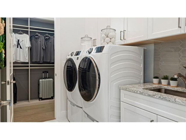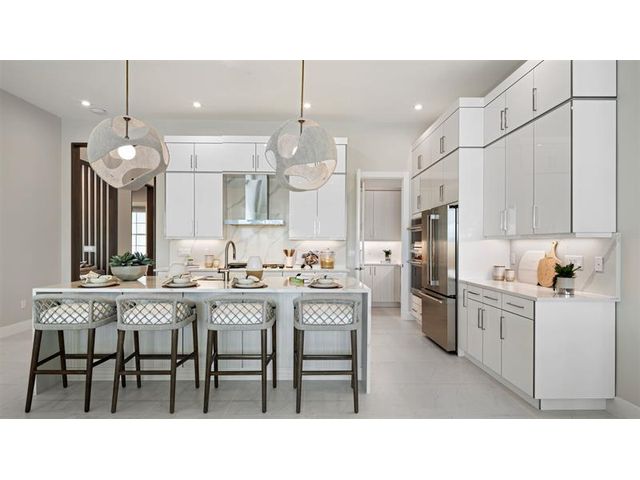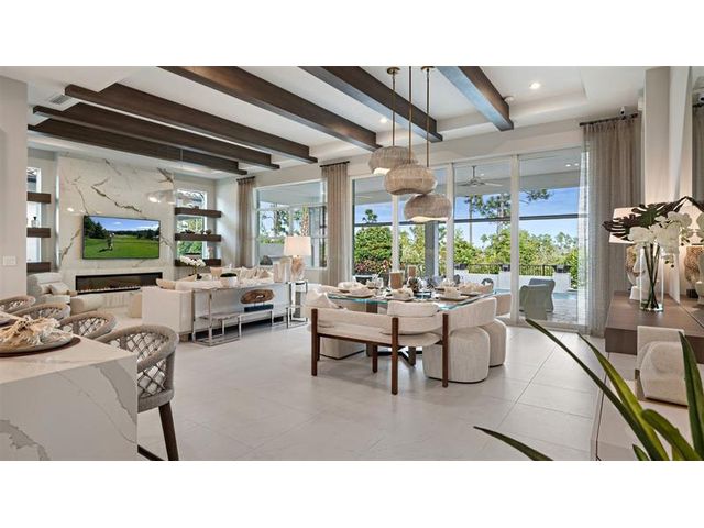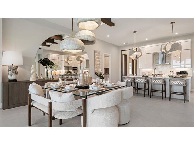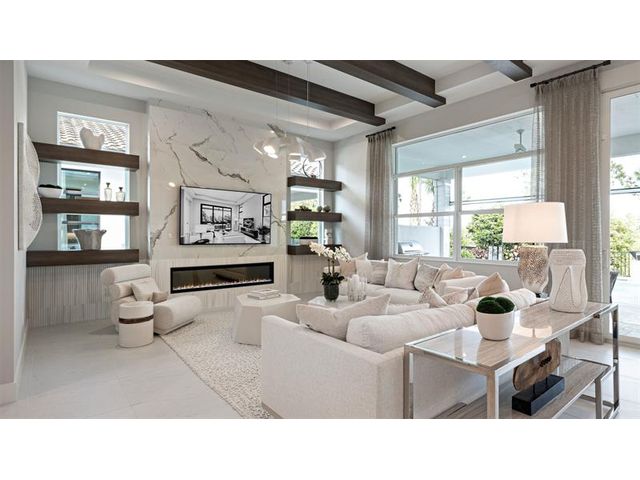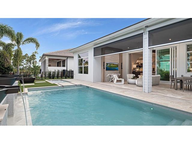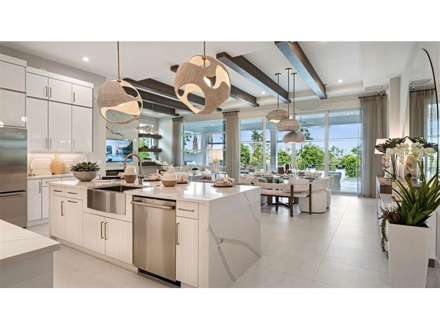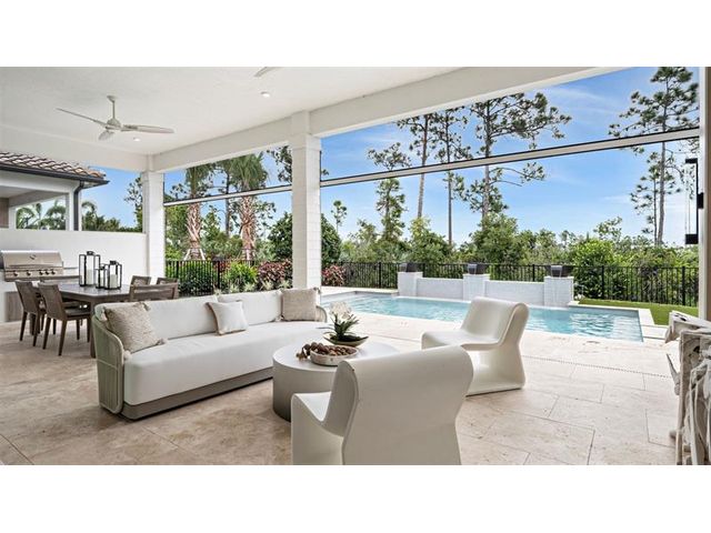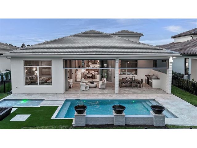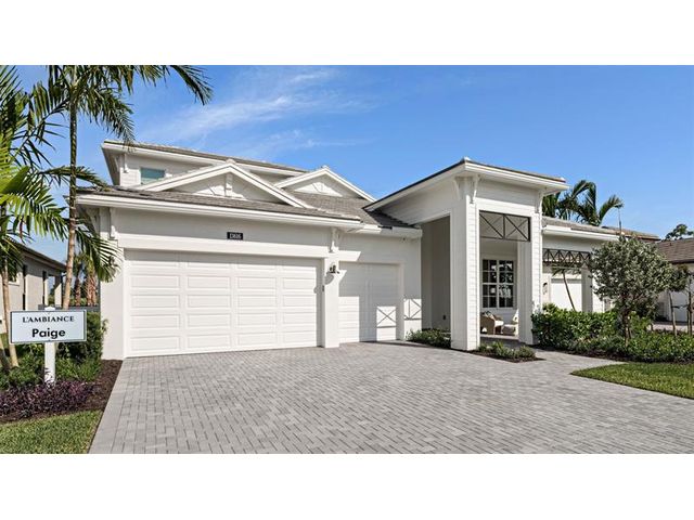 *NEW CONSTRUCTION* Fully Furnished, Decorated Paige Model for sale. This professionally designed and decorated builders' model is being offered for sale with everything you see included. A custom pool overlooking a preserve view, within the gated community of L'Ambiance. This Paige model, built by Kolter Homes has custom trim work and lighting throughout the home. A built-in closet and built-in pantry, as well as an upstairs bonus room with an additional bathroom and closet complete this 3-bedroom, 4 bathroom, 3-car garage, bonus room home. The owners' suite and lanai have been extended 4'. The lanai opens up through a 16' wide slider to a built-in outdoor summer kitchen and a custom pool.