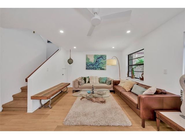 HERE'S THE ONE! Ideally located in the heart of Fort Lauderdale, this unique and stylish townhouse is tucked away in the serene enclave of Spanish Springs and features open floor plan, plank tile flooring, updated kitchen w/ white cabinetry, SS appliances, large bedrooms, upstairs master bedroom w/ walk-in closet, bonus room for home office, den or additional bedroom, in-unit washer & dryer, new roof in 2024 and a gated outdoor back patio providing privacy & comfort for entertaining, outdoor dining, gardening or quiet relaxation. Community amenities and additional features include tropical landscaping, koi ponds, orchid gardens, resort-style pool, clubhouse, fitness center and more. Pet-friendly. Easy access to dining, shopping, downtown, Las Olas, Wilton Drive, airport, and area beaches.