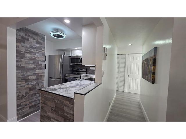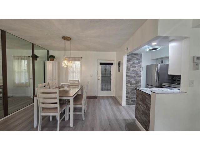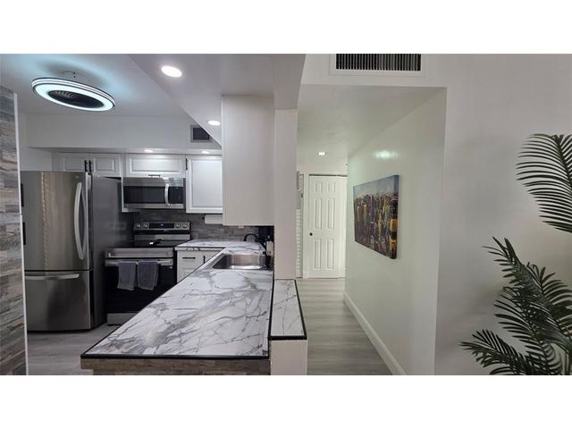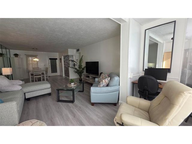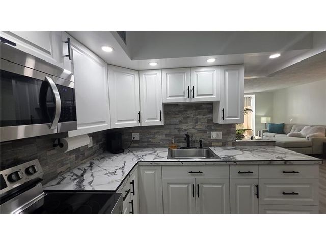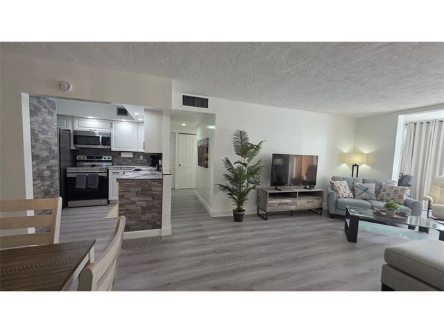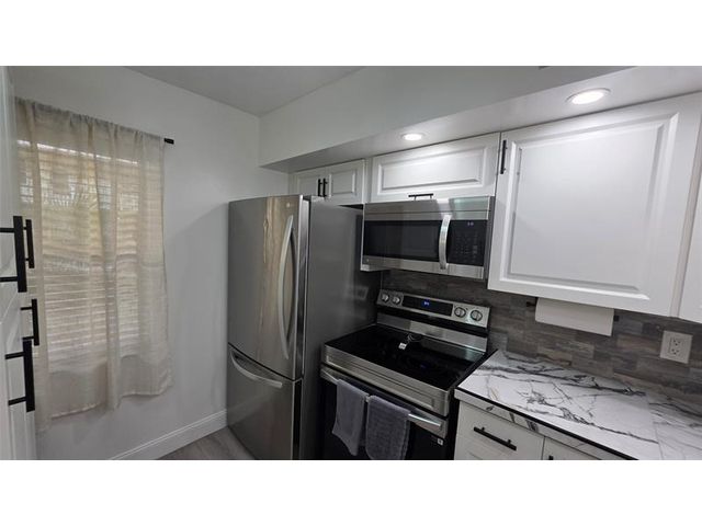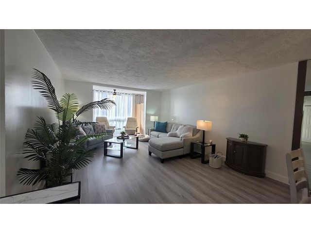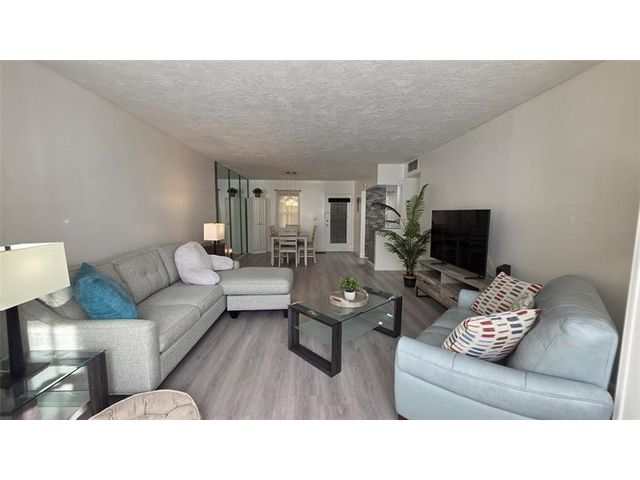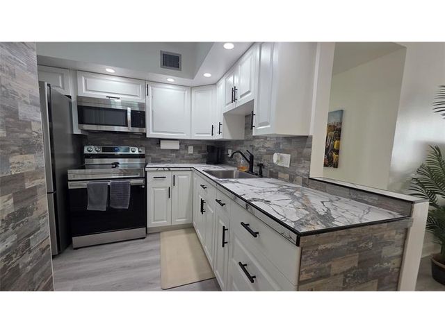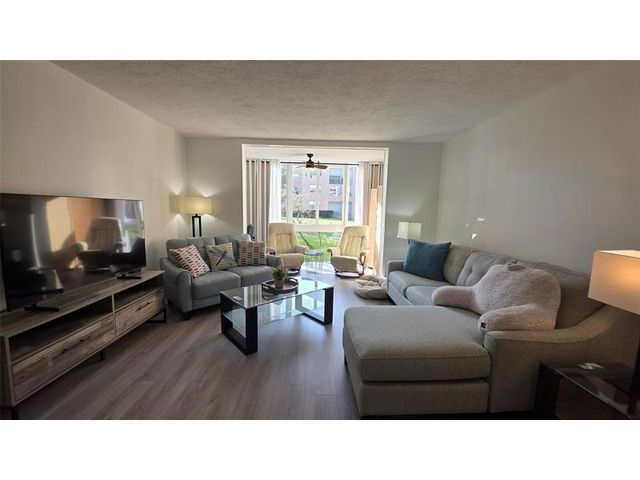 Completely updated, spacious 1-bedroom, 1-bath corner unit on the first floor. This bright condo features an open, modern kitchen with white cabinetry, stainless steel appliances, tile backsplash, porcelain countertops, and a large pantry for extra storage. The updated bathroom, tile and waterproof flooring throughout, new lighting, and ceiling fans add to the move-in-ready appeal. Fully furnished with brand-new modern furniture (2023). Water heater (2019) and A/C (2019). Enjoy abundant natural light and a Florida room with impact windows overlooking relaxing garden views. Ideally located next to the pool, amenities, and clubhouse in Building B. Well-managed and well-maintained building within Somerset Phase 2, an active 55+ gated community offering numerous activities and amenities.