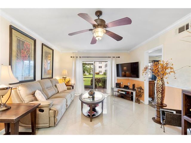 Located just 20 minutes from the beach, check out this 2 bed, 2 bath residence in a desirable 55+ community. Featuring private first-floor entrance with impact front two windows and door. Tile flooring throughout extends to the private patio overlooking serene garden and canal views. The kitchen offers granite countertops with a breakfast area, plus space for a dining area and a spacious living room. Large primary suite includes a walk-in closet with washer and dryer hookups. Both the primary and guest bathrooms feature upgraded walk-in showers. Private parking and guest spots. Excellent storage throughout. Only a few steps away from the community pool. No pets permitted. Prime location with shopping, dining, and major highway access including access to 441 and Lyons Road.