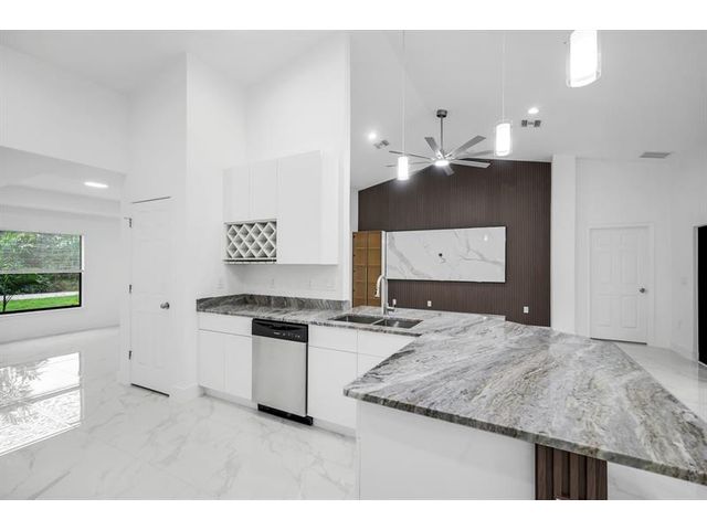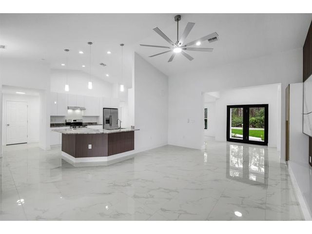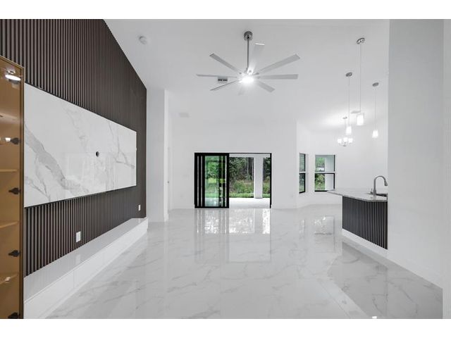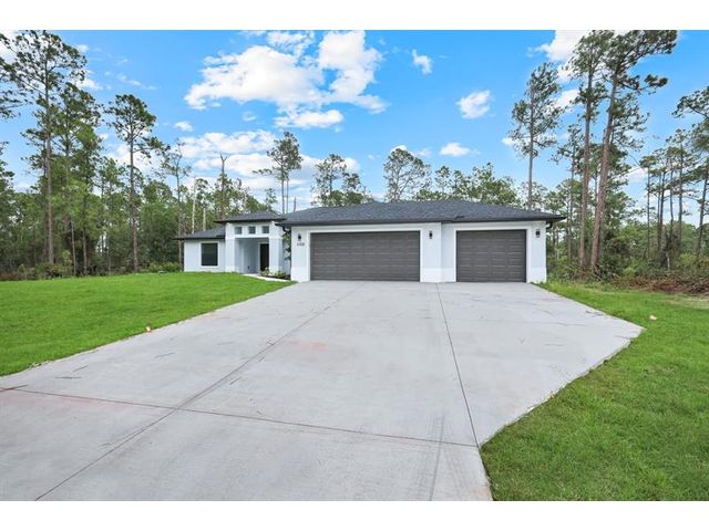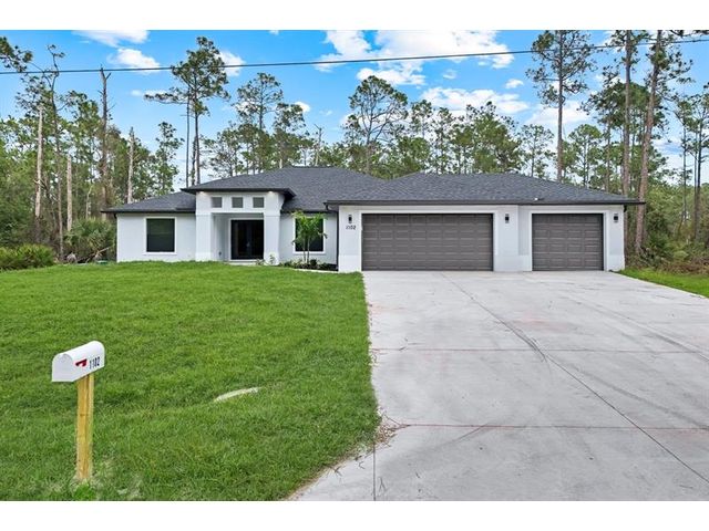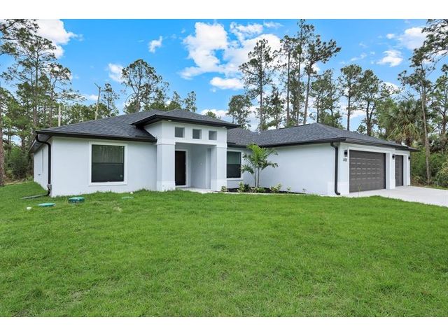 4 bedroom 3 bath 3 CAR Garage HALF ACRE new construction home in Lehigh Acres FLorida. Sabal Palm Plus floor plan offers plenty of space for the whole family. The seperate dinning and living rooms can also be used as flex spaces. The vaulted ceilings, hurricane rated windows and doors and extra large garage on this half acre lot set this home apart from the others. Primary bedroom is 14 X 17 and has two walk in closets the bathroom has seperate tub and shower and two sinks. A split floor plan offers 2 bedrooms that share a bathroom and another bedroom with it's own full bathroom with a door to the lanai. Kitchen has large granite island and a nice sized dinning area for your everyday meals. Seller is offering a rate to buy down buyers rate which will significatly lower the payment.