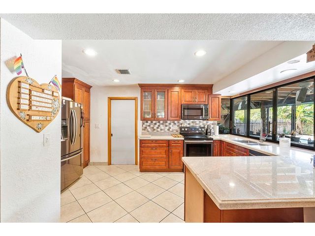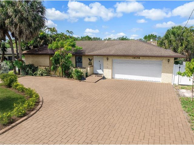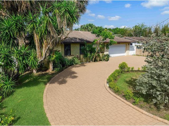 Rarely available and one of the largest homes in the Royal Palm Isles neighborhood, this spacious waterfront home offers nearly 2,200 square feet with a 3-bedroom split floor plan, featuring a privately separated primary suite. Enjoy ocean-access canal living with the rare benefit of a completely private waterfront view, with no homes across the canal and lush tropical backdrop. Inside, vaulted ceilings enhance the open, airy feel of the living space with a fireplace. The updated kitchen with modern appliances is ideal for living and entertaining. This home also features a full two-car garage. The neighborhood also has several parks: Easterlin County Park, Royal Palm Park, Stunson Nature Trail and Oakland Bark dog park. Come see this amazing home.