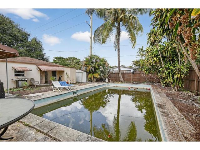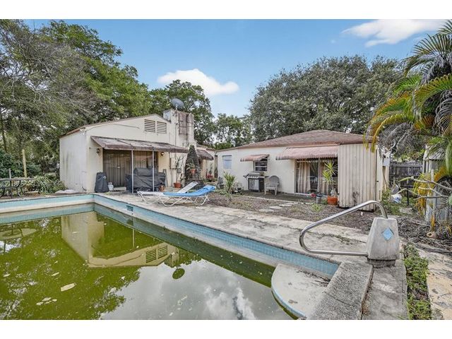 RARE DOUBLE LOT PROPERTY near the beach in highly desirable Hollywood. Elevated above surrounding homes, this unique offering features a 3-bed/2-bath main residence plus a 1-bed/1-bath guest house with mini kitchen ideal for in law or rental inclome. Total 2708 SF under air. The expansive yard has a 10ft deep pool, alley access and fenced parking for an RV or boat. Home needs updating, is sold as is and priced way below improved value. There is plenty of room to purchase as a flip or as a rental for the guest house or for both homes. Roof 2006 and water heater 2025. Homes on double lots this close to the beach are seldom available. Perfect for end users or investors alike. less than 3 miles to the beach makes this desible for full time living and/or vacation-rental income.