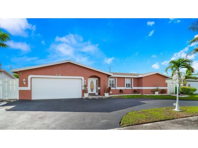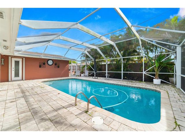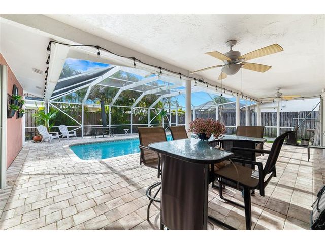 Rare spacious ranch-style home in Sunrise Golf Village offering 5 bedrooms and 2 bathrooms, thoughtfully laid out for everyday comfort and easy living. Wood flooring flows through the main living areas, while tile floors add durability in the bedrooms. The oversized kitchen provides generous counter space and storage, making it a natural gathering spot. Head outside to a screened-in pool, ideal for relaxing or entertaining year-round, all within a fully fenced yard that offers privacy and room to enjoy the outdoors. A two-car garage adds convenience, and the location places you close to local shopping, dining, and major highways for easy commuting. This well-rounded property combines space, functionality, and a setting that supports a comfortable Florida lifestyle.