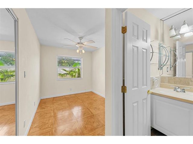 2/2 condo on the back corner with direct access to the pool and large private outdoor patio. This unit is move in ready, has first floor entry. Common Laundry right next to this unit. Budget, application and documents are in the supplements. 2 parking spots (tandem). 3 Month minimum rental restriction. Can rent right away. Being sold from the executors of estate. Please use showing time and see brokers remarks for any questions. Maintenance includes exterior insurance, Trash, roof, pool maintenance, landscaping. No short term rental or airbnb /vrbo.