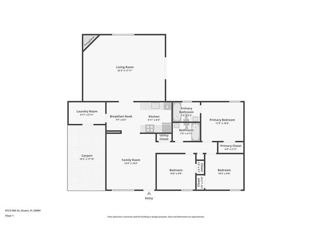 This 3 bedroom, 2 bath home offers major upgrades and a versatile layout. A brand new roof installed in 2025 provides peace of mind! Inside, enjoy newly painted walls, doors, ceilings, and trims, along with an updated kitchen featuring refreshed cabinets and a new electric range. The home includes both a family room and a separate living room, offering plenty of space for gatherings and everyday living. The living room features a fireplace, adding character to the space. Carpeted bedrooms and a dedicated laundry room add functionality. Outside, the spacious front yard, driveway parking, and large fenced backyard provide excellent outdoor space for entertaining, pets, or relaxation. Conveniently located near downtown Stuart, shopping, dining, and major roadways.