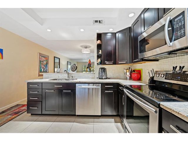 Experience luxury living in this completely remodeled waterfront 2 bedroom 2 baths custom condo nestled in a vibrant 55+ community. Step into elegance with a stunning open kitchen offering modern design touches throughout. Impact windows & doors enhance security while framing breathtaking waterfront views from the patio. Revel in the spaciousness of a huge walk-in closet and bathroom suite in primary bedroom. As you step outside on the huge extended balcony, the true magic of this property unfolds & provides the serenity & space with a sparkling lake view inviting you to unwind. In addition, leisure & recreation are right at your doorstep w/fabulous amenities, 50,000 sqft clubhouse, bistro, pickleball, tennis, gym, 150+ clubs, pool, on-site pharmacy, theater, golf course & courtesy bus.