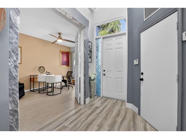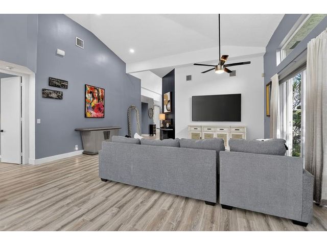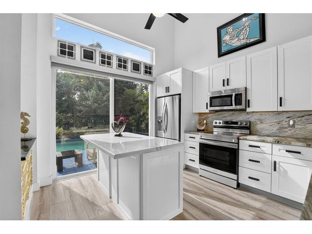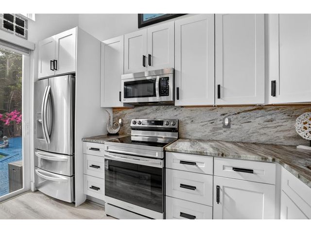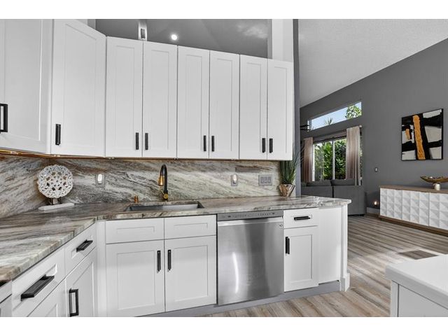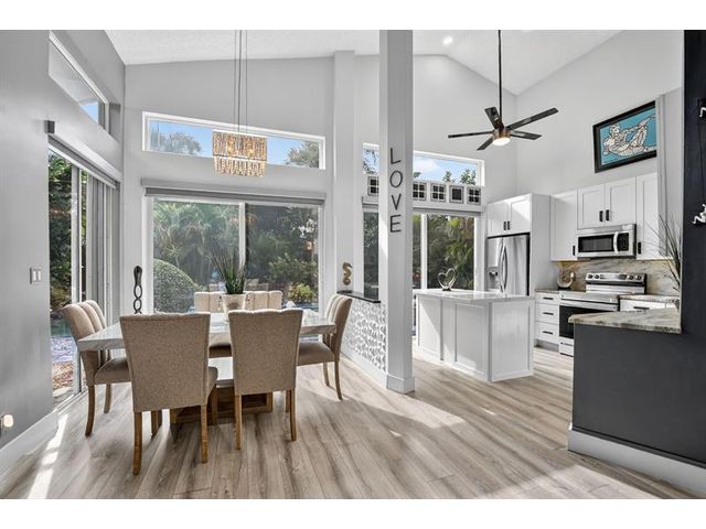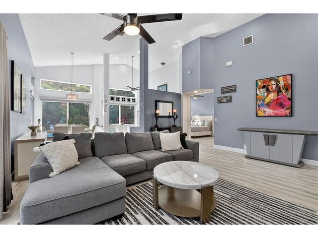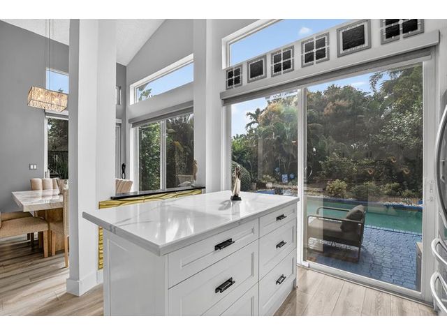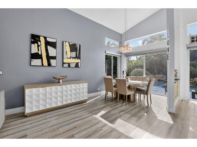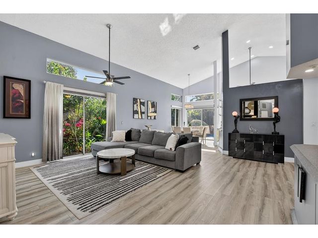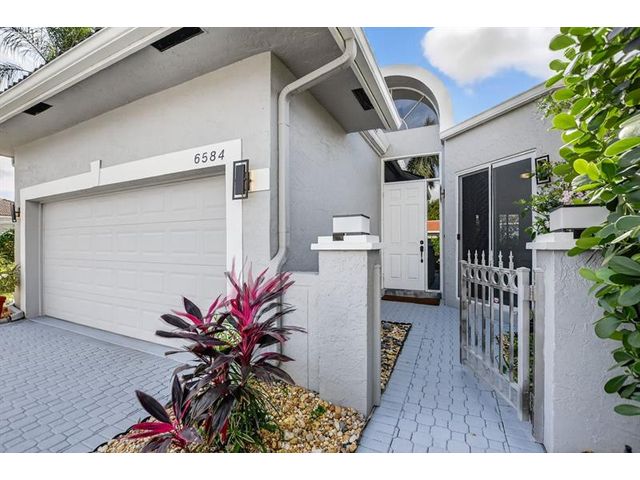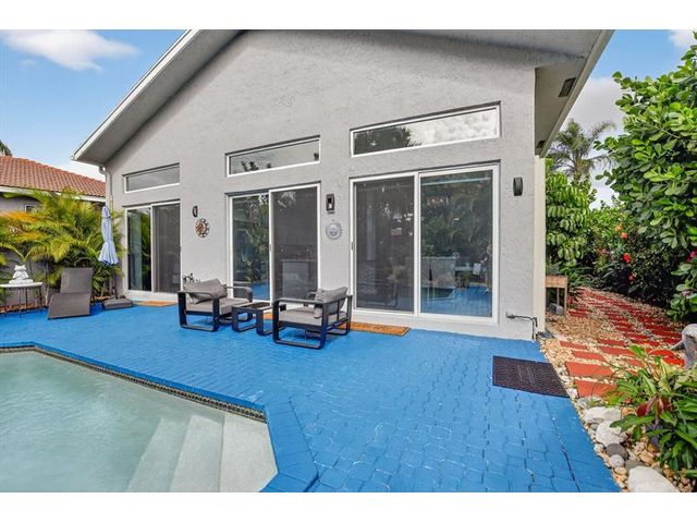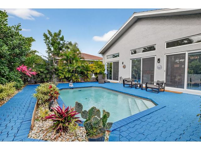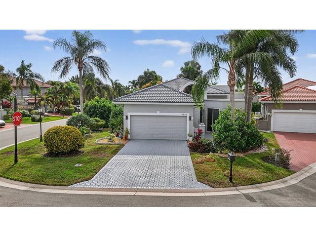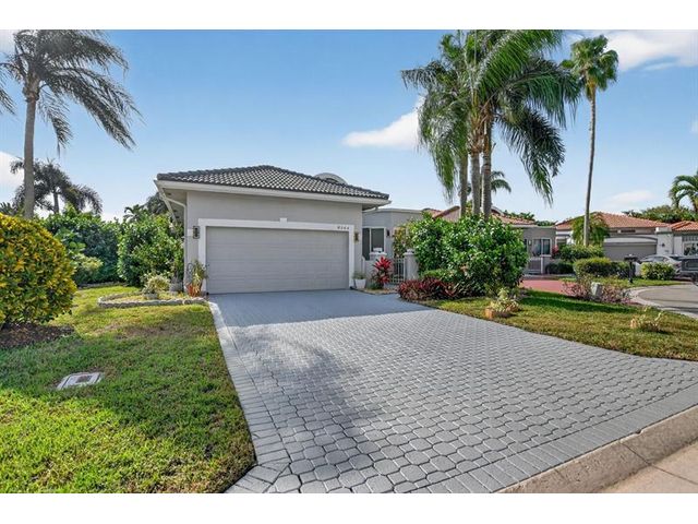 Live the life at Newport Bay Club with no buy-in fees. NBC has 225 homes, 24 hour manned-gate, gorgeous, updated clubhouse with fitness center, heated/chilled resort-style pool, pro-shop, 7 tennis courts, 4 pickle ball courts, basketball court and play area. On Jog Rd, near Morikami Museum, shopping, great schools and Starbucks! This POOL home is an oasis sitting on a PRIVATE corner lot. Host a pool party and impress friends with your REMODELED kitchen with white cabinets, ss appliances, granite counter tops and island. The primary BR suite feels like a spa with soaking tub, double vanities and custom closet. Natural light fills the space, especially in the common areas with the HIGH CEILINGS. Enjoy updated flooring throughout and impact sliders leading to the pool. AC 2024!