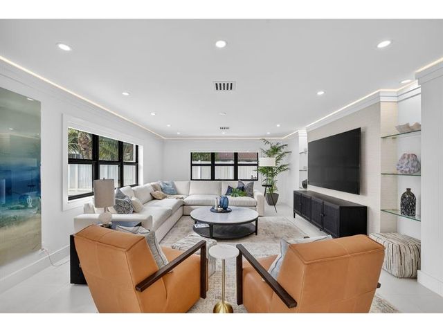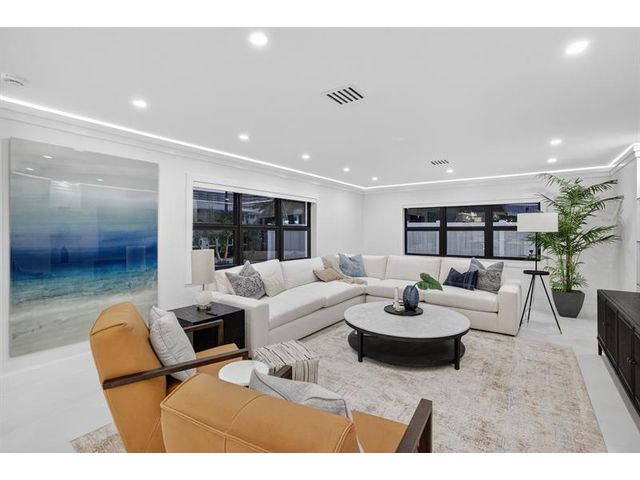Absolute Masterpiece! Once-in-a-lifetime opportunity to own your brand-new waterfront coastal modern home rebuilt from the concrete up in sought-after Bermuda Riviera in East Fort Lauderdale. This 4BD/4.5B residence showcases exceptional craftsmanship exuding high-end finishes throughout. Taj Mahal stone accents welcome you at the entry. Chef’s kitchen featuring Wolf induction range, Sub-Zero fridge/freezer, custom hood, under-counter lighting, and butler’s pantry. Downstairs bonus room ideal for office/bedroom/flex space. Fully equipped smart home with security system. Spacious bedrooms with spa-inspired baths and illuminated mirrors. Outdoor waterfront oasis with newly built pool featuring lighting and fountains, updated plumbing, and brand-new dock—perfect for relaxing and entertaining!