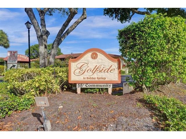 Discover the perfect blend of comfort and convenience in this beautifully maintained 1-bedroom, 1.5-bath condo located in the desirable Golfside community of Holiday Springs. This impeccably clean unit features a brand-new A/C, vaulted ceilings, and spacious living areas with laminate and tile flooring throughout. A full-size washer and dryer are conveniently located on the enclosed balcony. Residents enjoy a private screened satellite pool within Golfside, along with full access to the Holiday Springs Community Clubhouse offering a fitness center, resort-style pool, game room, billiards, tennis courts, BBQ area, and more. Cable TV/Internet are included in the monthly HOA. Located in a vibrant and active 55+ (HOPA) community and just a short drive to the beach. Schedule your showing today!
