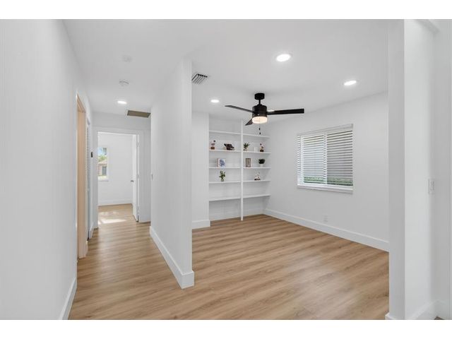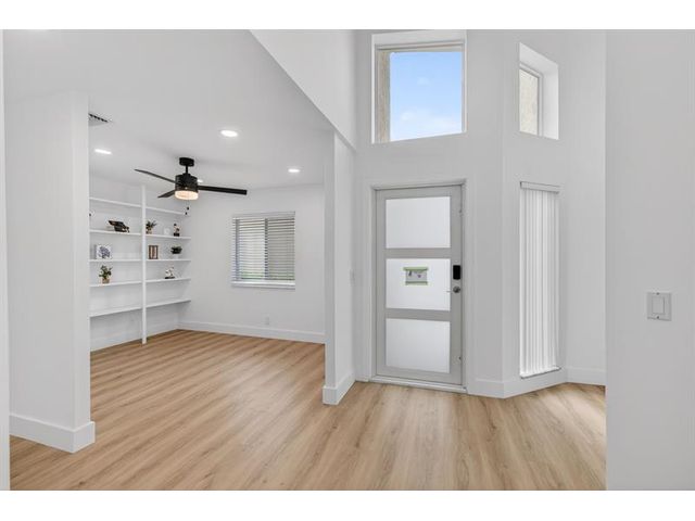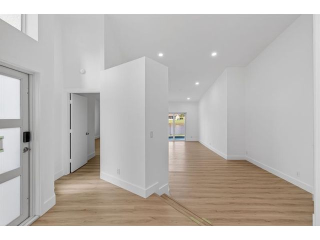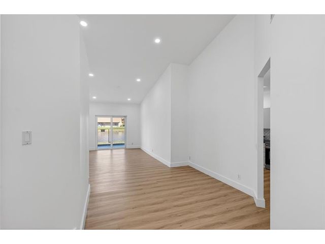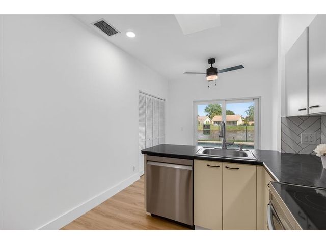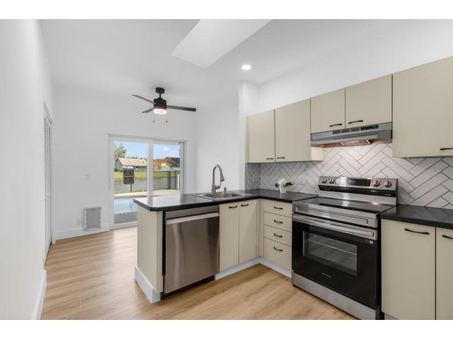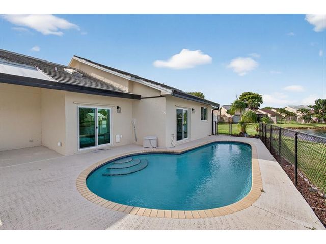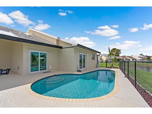 REDUCED & READY TO SELL. Beautiful, newly remodelled, waterfront pool home on a cul-de-sac. Featuring high volume ceilings, split plan - 3 bedrooms plus 4 bedroom/office/den. Impressive foyer entry, clerestory windows & high volume ceilings. Completed & permitted, impact doors/windows, NEW electrical panel & outlets, NEW fire alarms, NEW primary bathroom, NEW luxury waterproof wide plank wood look vinyl flooring throughout, NEW modern baseboards, door trim. NEW stove, NEW dishwasher, NEW countertop microwave, NEW backsplash, & skylight. NEW lights & fans. NEW fresh paint throughout. Eat-in kitchen, lake views & access to pool/patio. Pantry/utility closet, Separate laundry room with cabinetry, Extended garage, extra storage, workbench & cabinetry. HVAC 2018. Move-in ready! Gate is not used.