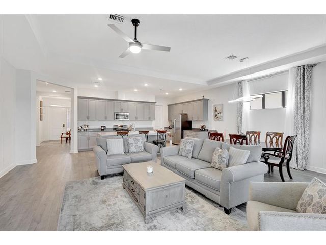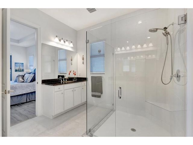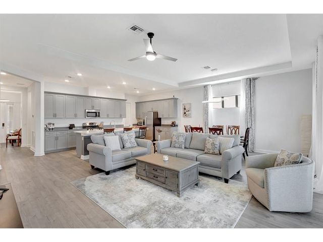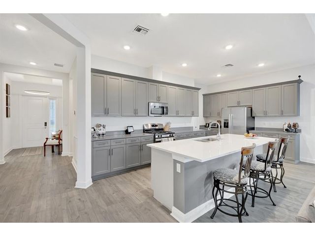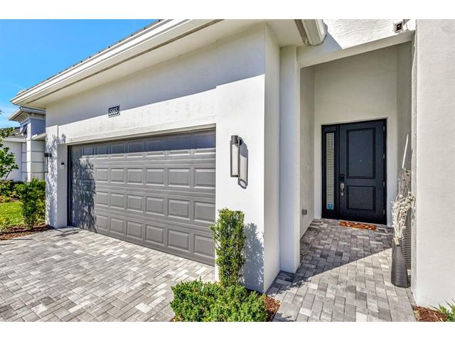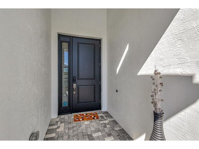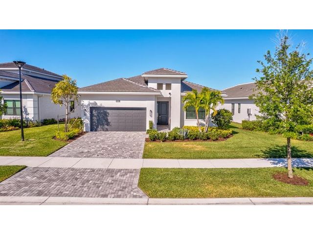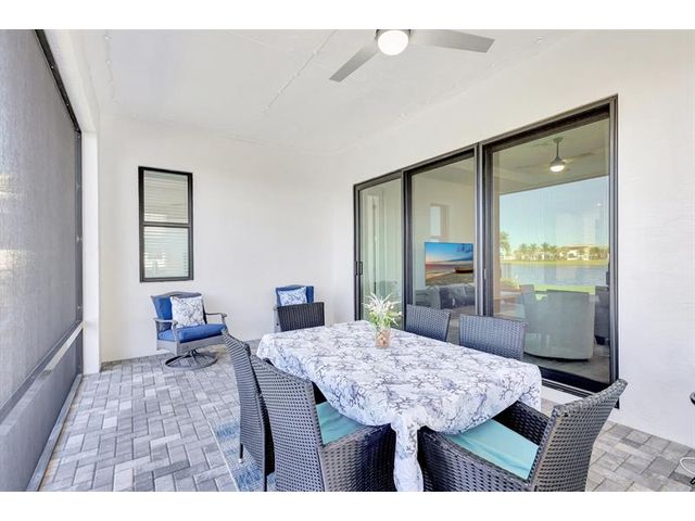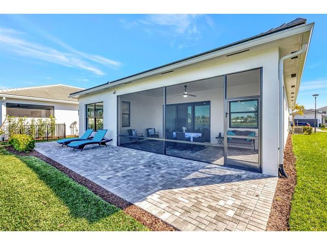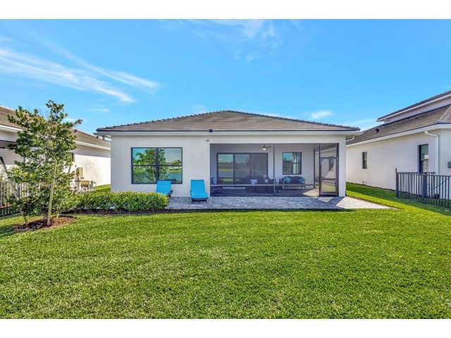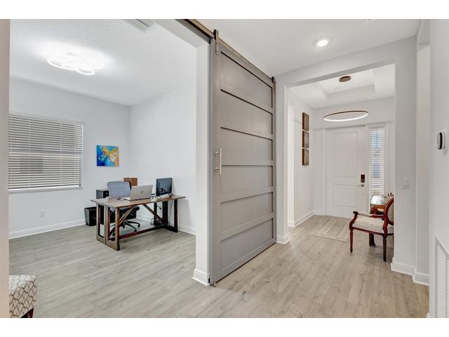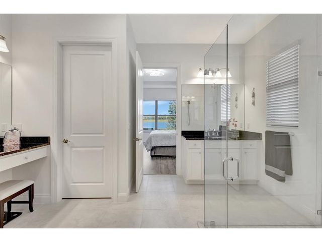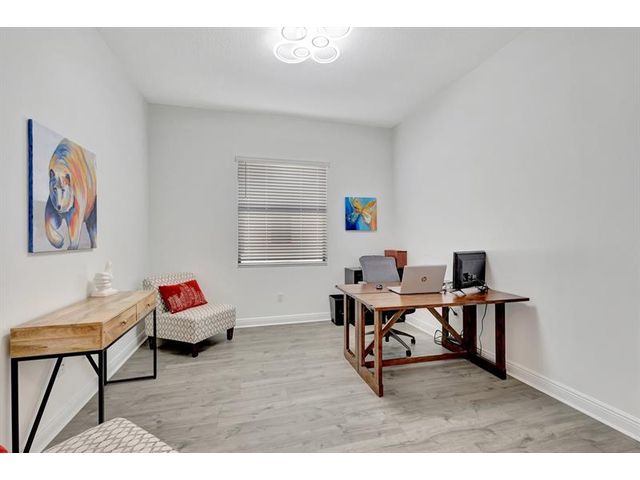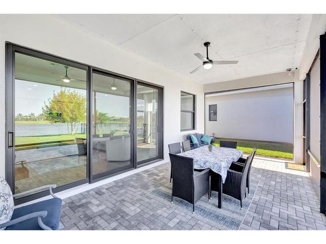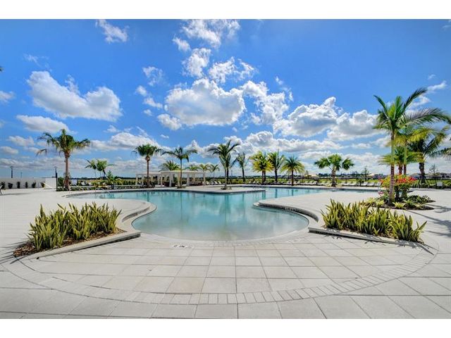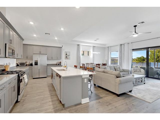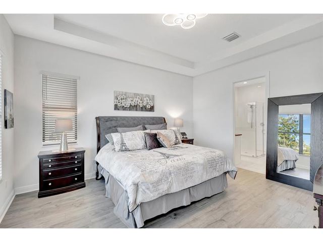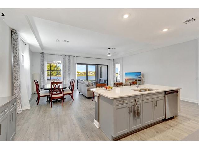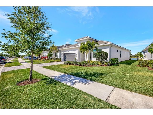 Winter scape resort style, lakefront 3 beds floor plan home w/ stunning panoramic views of the water, creating a serene & picturesque setting. Modern One-story home featuring impressive 10 & 11-foot ceilings & expansive windows for natural light. Elegant, seamless laminate wood flooring flows throughout, enhances the sense of spaciousness & warmth. Large den. Tankless water heater, Frameless glass shower adds a touch of sophistication. Step out onto the screened-in lanai, providing ample space for relaxation. The home is situated in a highly sought-after 55+ gated community that offers a wide array of resort-style amenities, including pickleball, tennis, heated pool, dog park, bocce courts, & entertainment director adds to a vibrant community life. Its 2 bedrooms plus an office/dan/guest.