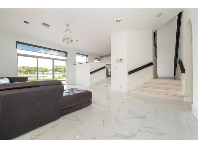 Resort-style living with lake views woven into everyday life; this 4 bed/3 bath residence captures sweeping water views, creating a bright, calming backdrop throughout the home. All bedrooms are thoughtfully positioned upstairs, keeping the main level open and effortless for living and entertaining. The primary suite feels like a private sanctuary, complete with a spa-inspired bath featuring a soaking tub, glass-enclosed shower, sleek floating vanities, and modern finishes. The private outdoor space invites slow mornings and sunset wind-downs by the water. A 2-car garage adds convenience and storage. Doral Isles is known for its guard-gated entry and resort style amenities that include pool, fitness facilities, and sports courts—an elevated community lifestyle in the heart of Doral.