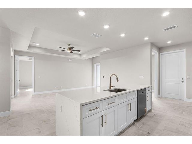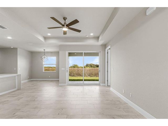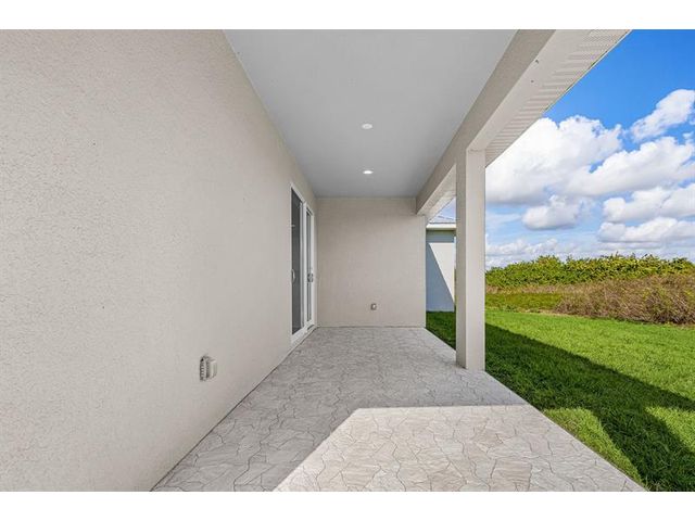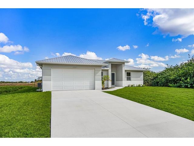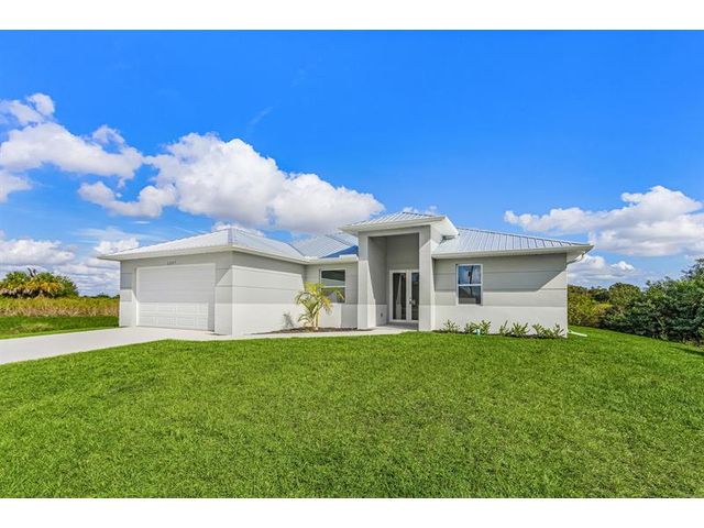 Welcome, a thoughtfully upgraded new construction home that feels easy and inviting the moment you arrive. The metal roof and lush landscaping with irrigation create great curb appeal, while high ceilings and impact windows and doors fill the home with light and peace of mind. Inside, the kitchen is clean, modern, and functional with solid surface countertops and stainless-steel appliances, perfect for everyday living or casual entertaining. Step outside to the tiled lanai, an ideal spot to enjoy quiet mornings or relaxed evenings. Brand new, beautifully finished, and designed for comfort. —schedule your showing today and see why this one stands out.