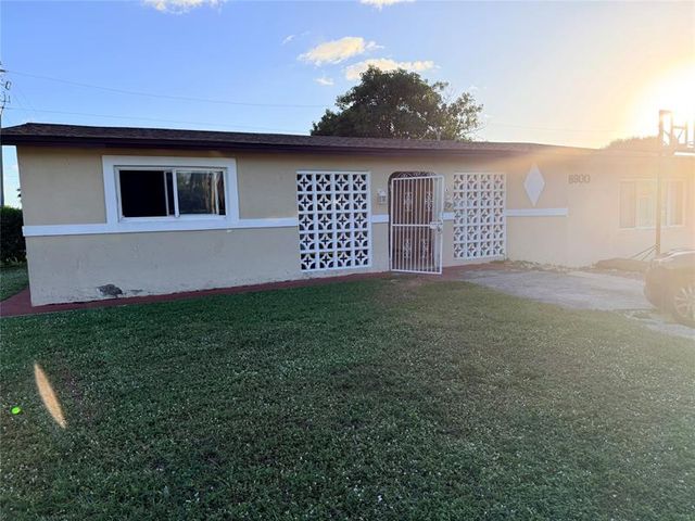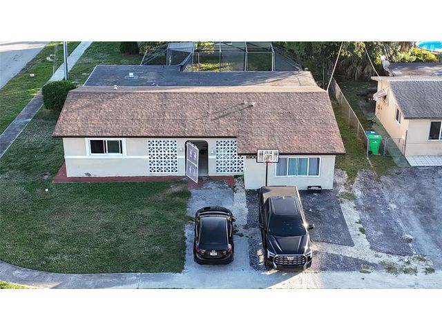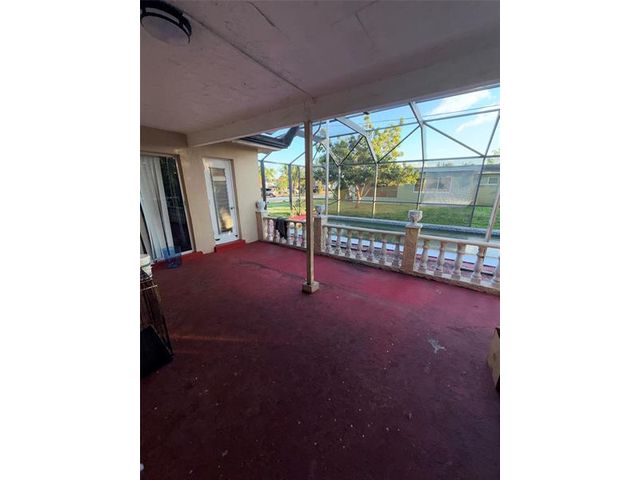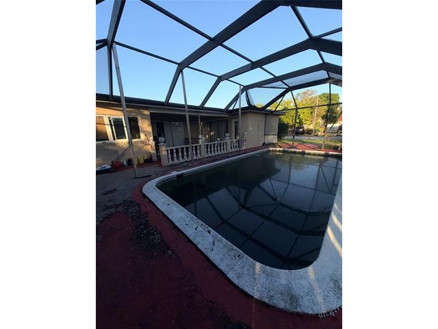Elegant one-story pool home on a quiet oversized lot. This well-maintained 1,700+ sq. ft. residence features 3 bedrooms, 2 bathrooms, plus a private-entrance guest suite or man cave. Enjoy outdoor living with a refinished Diamond Brite pool and hurricane-rated screen enclosure, located in a peaceful, well-manicured neighborhood. The open kitchen offers white quartz countertops, a red quartz island, premium cabinetry, gas stove, and stainless Gallery appliances. Porcelain wood-look flooring, smooth plaster ceilings, updated bathrooms, new roof, new hot water heater, and hurricane-impact windows throughout. Property needs improvements and is ideal for investors or buyers seeking value-add potential.