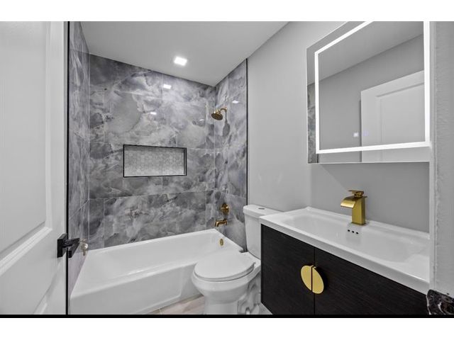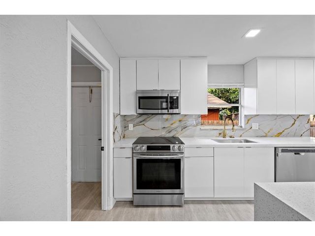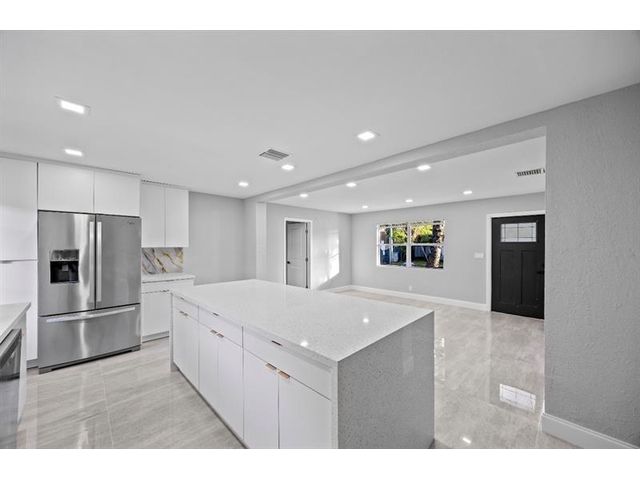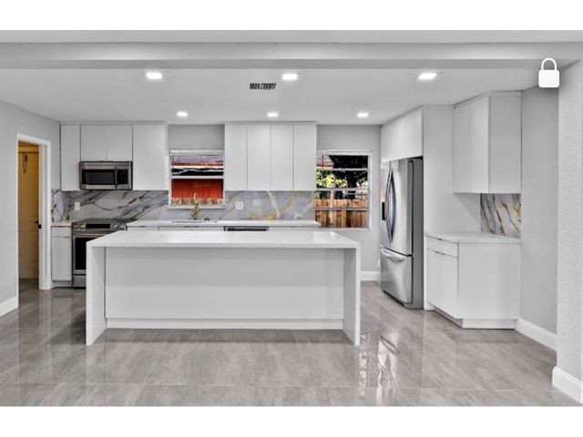 Beautifully and newly remodeled 4-bedroom split-bedroom home on a fully fenced corner lot with outstanding curb appeal. This light-filled residence features a stunning custom white kitchen with sleek white quartz countertops, stainless steel appliances, a huge center island, and recessed lighting throughout. Spacious floor plan includes a large laundry room, generous walk-in closets, and carpeted bedrooms for comfort. Porcelain tile floors enhance the main living areas, while the luxury custom-designed bathrooms showcase high-end finishes and elegant details. Impeccable craftsmanship, stylish upgrades, and thoughtful design make this home truly move-in ready. A must-see property offering beauty, space, and modern living at its finest.