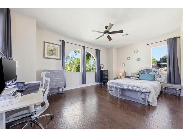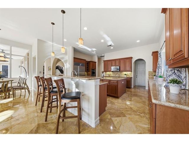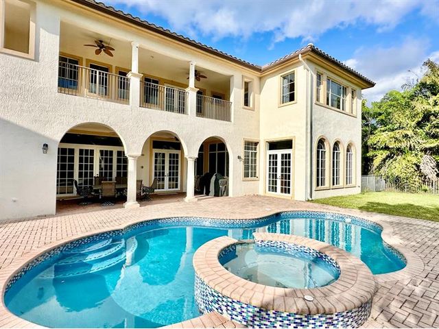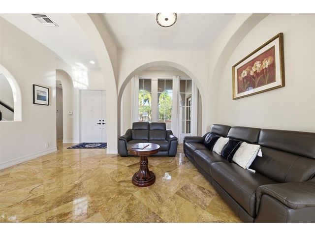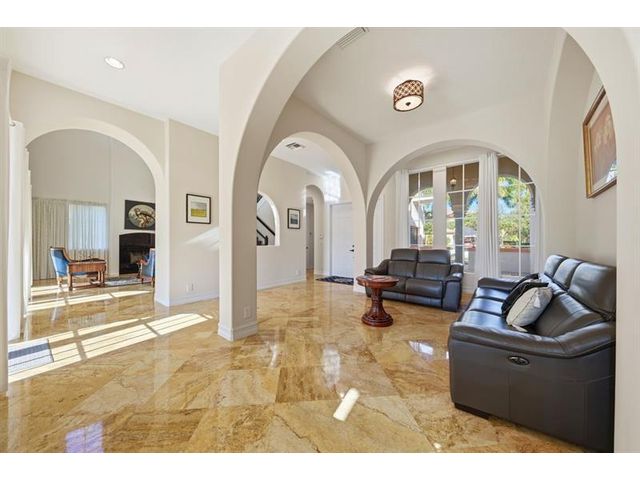 Welcome to this refined Mediterranean-style home, offering an Open 2-story layout filled with Natural light. With 5 bedrooms and 4.5 bathrooms, blends Elegance and Comfort, featuring Sleek natural Marble flooring, Soaring High Ceilings, graceful Archways, and a cozy Fireplace. The oversized Gourmet Kitchen is a chef’s delight, showcasing Hardwood Cabinetry, Granite Countertops, a Central Cooking Island, and Premium Stainless-Steel Appliances. Step into the resort-style pool area, Enjoy Serene Water Views—ideal for Entertaining and Unwinding. One Bedroom & a Full Bath Downstairs; Spacious Primary Suite plus 3 additional Bedrooms & 2 Baths Upstairs. Set in a peaceful gated community w/ two Clubhouses, Gyms & Amenities, Top-Rated schools. Don’t miss this opportunity.