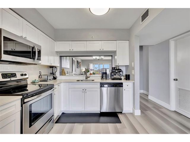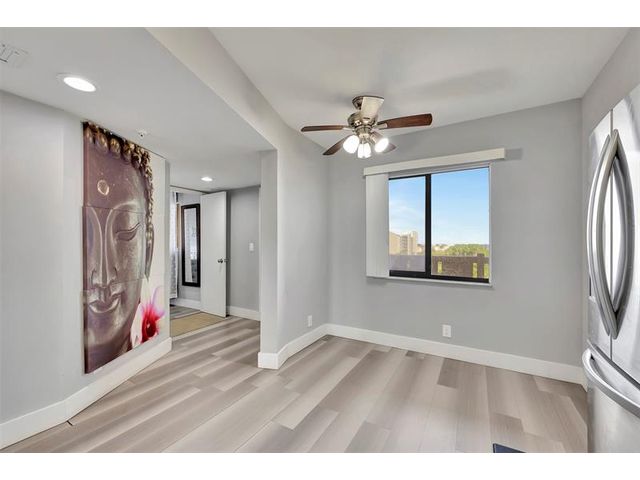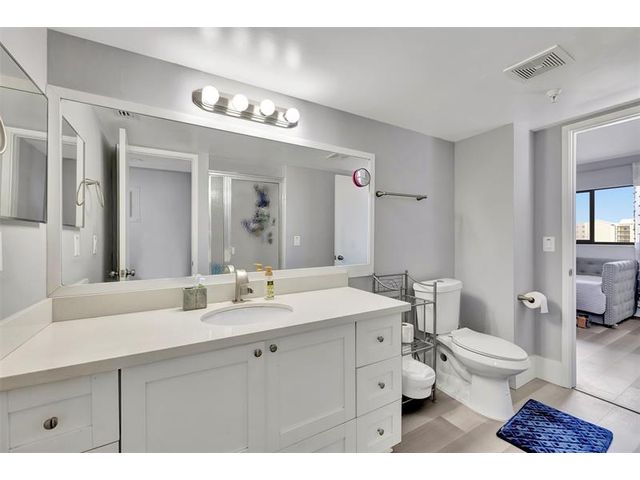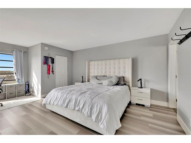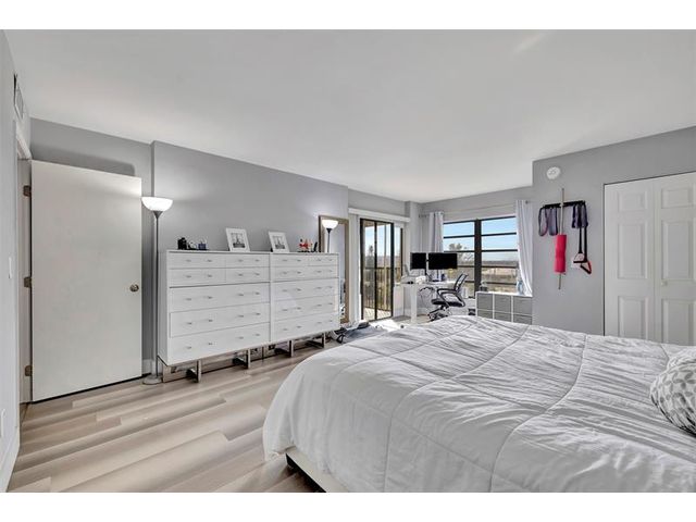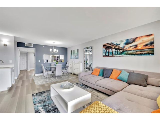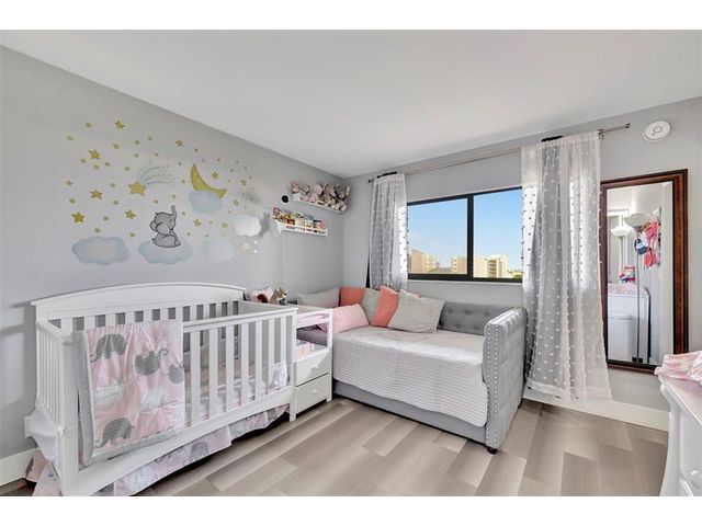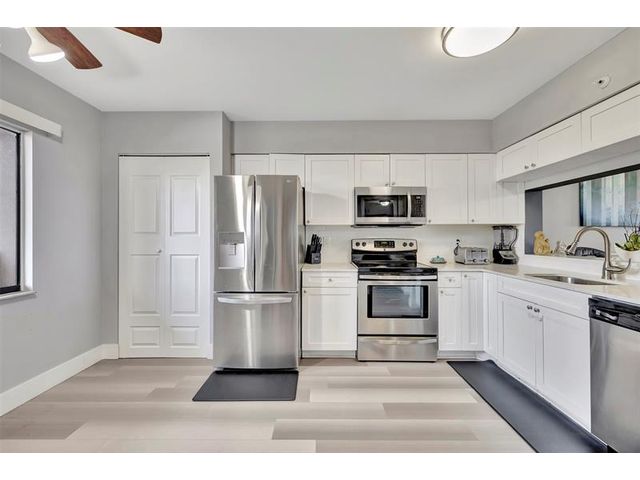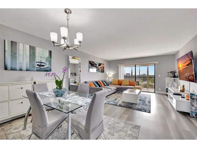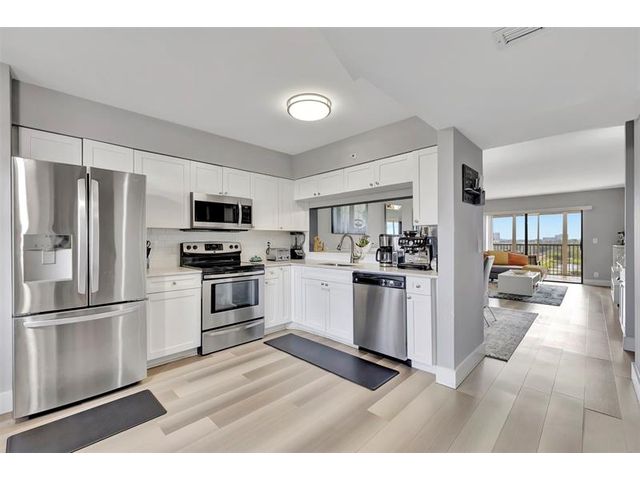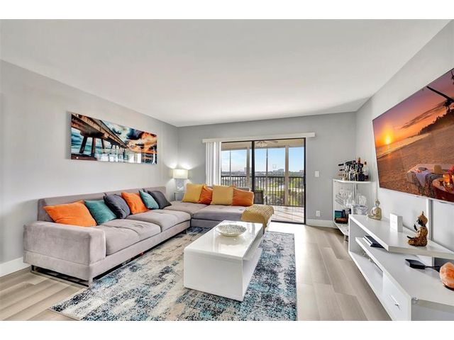 Discover this spacious 2-bedroom, 2-bath condo with stunning skyline and water views from its desirable 7th-floor location. The open and well-designed layout offers generous living, complemented by a private screened-in balcony—perfect for morning coffee or evening relaxation. The updated kitchen features stainless steel appliances and a contemporary design. Both bathrooms have been recently updated. A custom wet bar with sink is located off the dining area, ideal for entertaining. The oversized primary suite opens to the balcony and includes two walk-in closets plus a bonus sitting area with beautiful views, perfect for a home office. Separate laundry room with full-size washer+dryer. AC and W/H replaced in 2019. Fire sprinklers updated in 2020. All-age community and pet friendly.