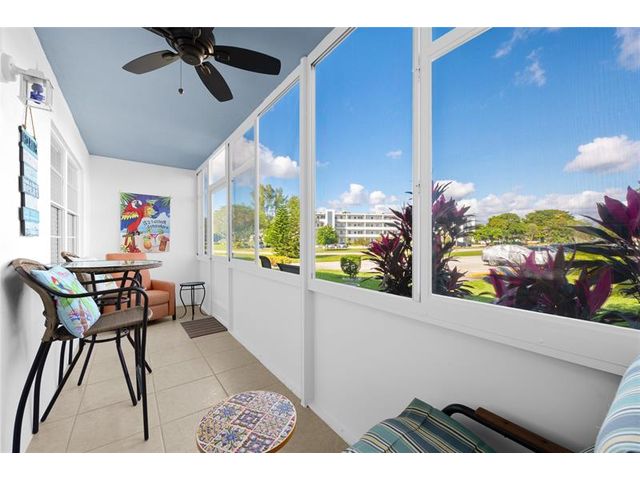 Stunning remodeled first-floor 2-bed, 1.5-bath condo in gated 55+ Century Village, Deerfield Beach! Turn-key—bring your toothbrush & embrace resort-style living. Just 3.5 miles to award-winning Deerfield Beach & pier. Freshly painted w/ updated baths, ceramic tile throughout, partial hurricane-impact windows, central A/C & breezy N/S exposure. Enjoy serene garden views from the enclosed Florida room or relax on your charming paver terrace with morning coffee. World-class amenities: 1,500-seat theater w/ shows/movies, indoor/outdoor pools, fitness, tennis, pickleball, billiards, free shuttle, endless clubs/classes! If there's an activity Century Village is sure to have it. You're just minutes away from having your toes in the sand of Deerfield Beach. Don't miss this opportunity!