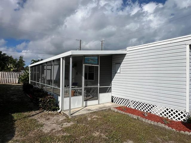 Charming 2 bedroom, 2 bathroom mobile home in the 55+ community of Sea Breeze. Conveniently located between US1 (Federal Highway) and A1A, this home has a 12x40 carport, 9x33 screened-in porch and 8x10 shed. Conveniently located close to shopping, library and the post office, offering both comfort and accessibility. Nature lovers will appreciate being near Jonathan Dickinson State Park and Hobe South National Wildlife Refuge. Sea Breeze offers amenities, including a pool, clubhouse and shuffleboard. HOA is $250 per month which includes lawn mowing, trash, basic cable/internet and all of the amenities. There is a $100 application fee and approval is required prior to purchase with Sea Breeze Mobile Homeowners, Inc.