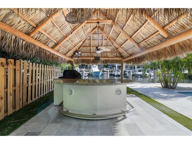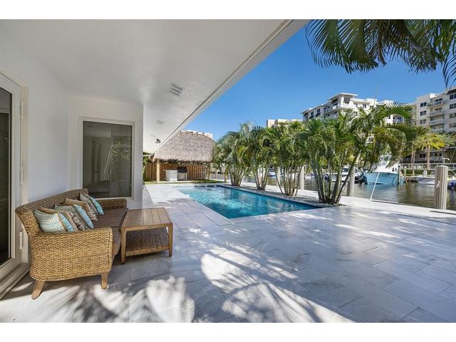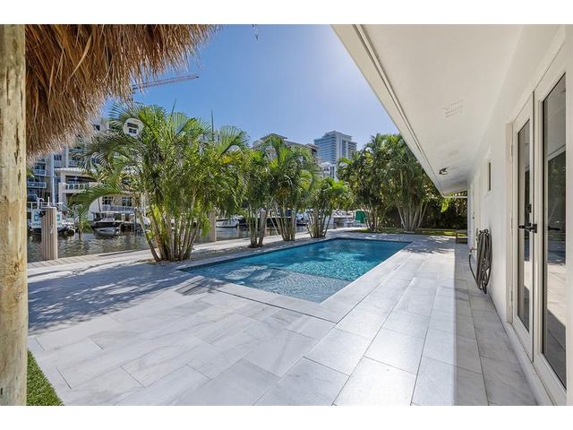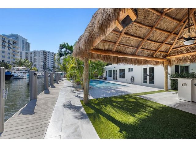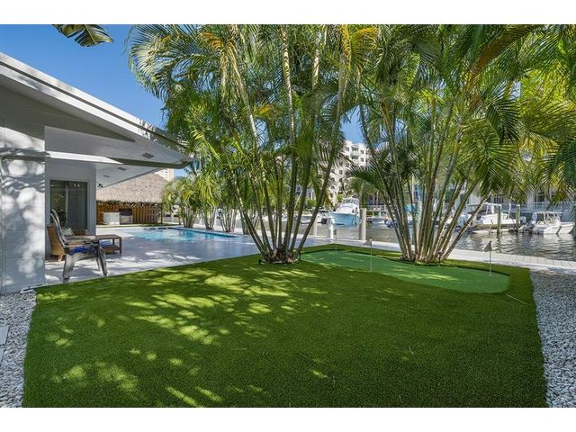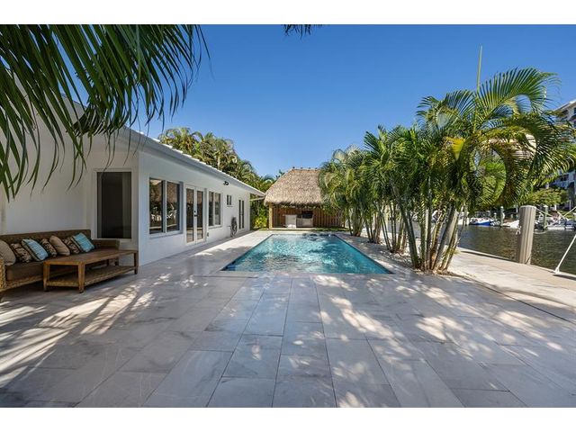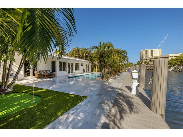 An impeccably renovated 3-bed, 3-bath Old Florida–style estate reimagined with sophisticated modern luxury. A refined split layout ensures privacy, while 2022–2025 upgrades deliver elite living: designer baths, weathered-wood LVT, premium gas appliances, quartz surfaces, hurricane-rated windows and doors, upgraded electrical, 50-year metal roof, new HVAC, Generac generator, and trenchless pipe lining. The resort-level grounds feature a heated pool, tiki pavilion with custom bar and grill, synthetic-turf yard, putting green, and 100+ ft of deep-water dockage with composite decking and 50-amp service. Set on exclusive, gated Terra Mar Island with direct ocean access and no fixed bridges. Walk, bike or cart to local shops, restaurants and bars in LBTS or Pompano.