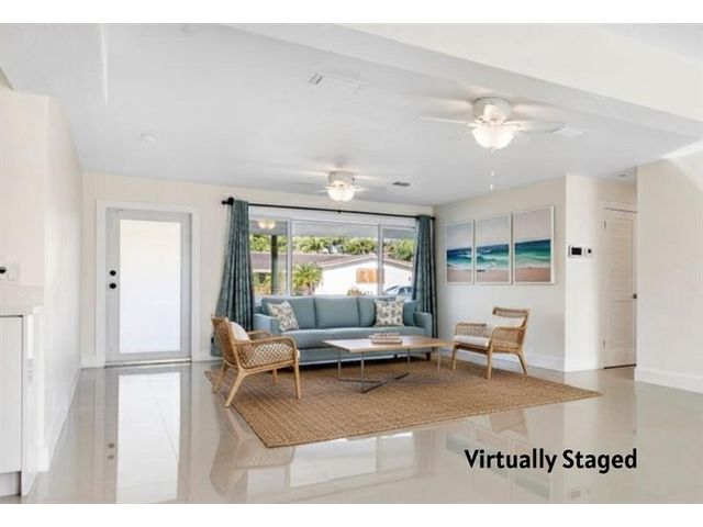 Easy coastal living in this charming and renovated 2 bedroom, 2 bath home in the sought after Cove section of Deerfield Beach, just minutes to the ocean. Ensuite primary, updated kitchen and baths, impact windows, and a newer roof! The functional great room layout with porcelain tile throughout offers a comfortable entertaining space while the one-car garage with air conditioning provides flexibility for parking, storage, or a home gym or workshop. Outside includes a large backyard with a shed and plenty of room to add a pool or create your own outdoor oasis. This gem is ideal as a primary residence, vacation home, or investment property. Close to beaches, dining, shopping, and all that Deerfield Bch has to offer, this home is a wonderful opportunity to enjoy the South Florida lifestyle.
